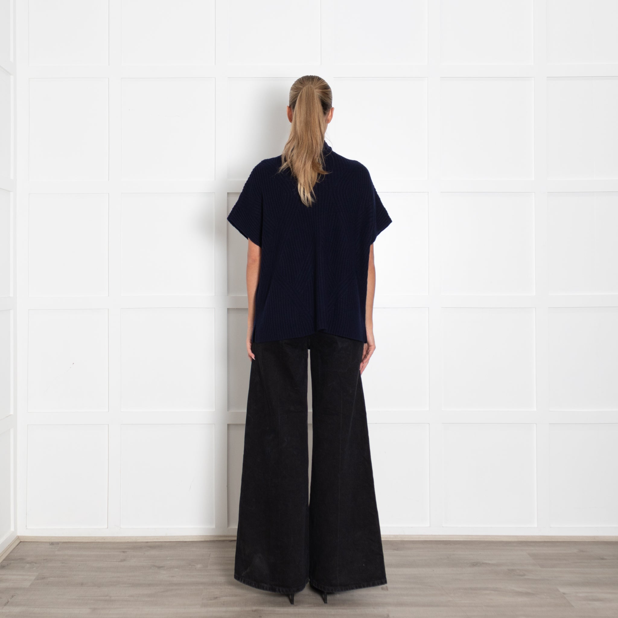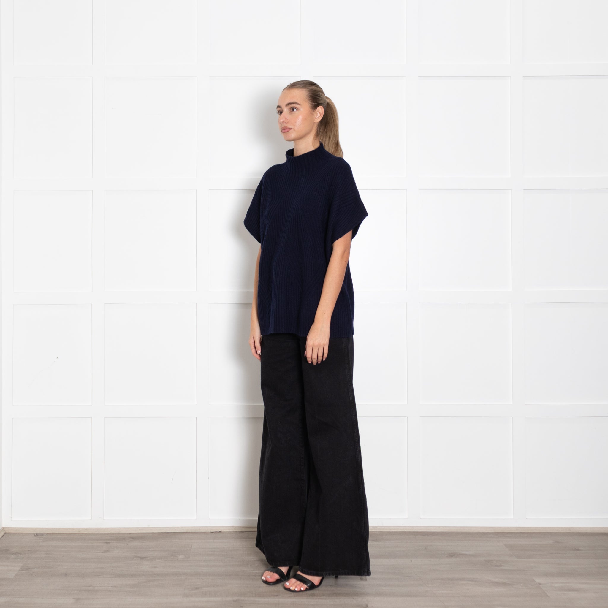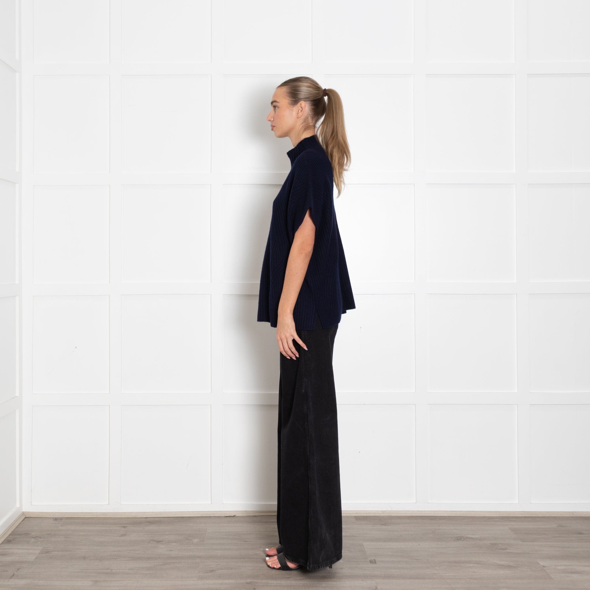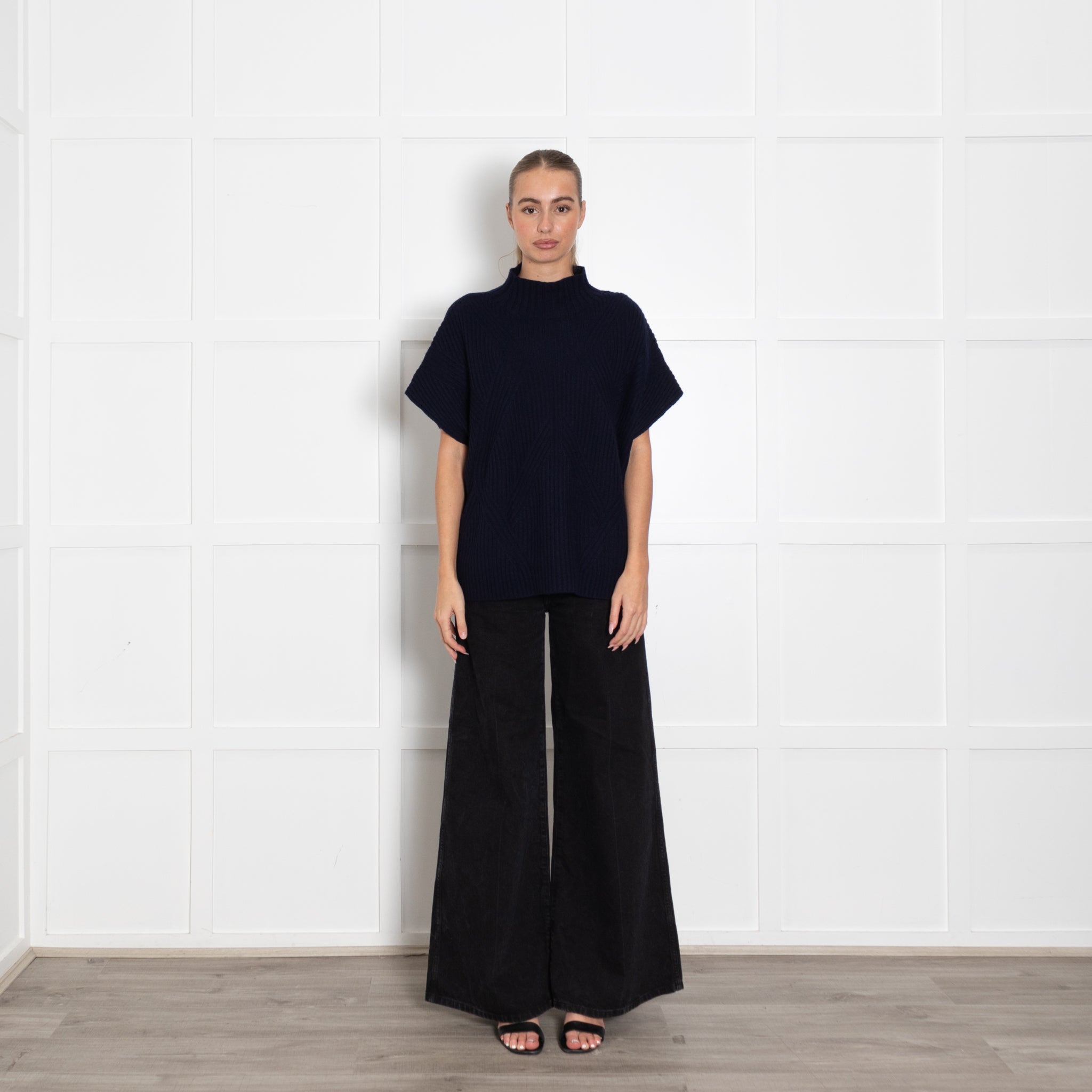Bompard navy blue sleeveless sweater, featuring a high rolled neck, crafted with a soft cashmere fabric.