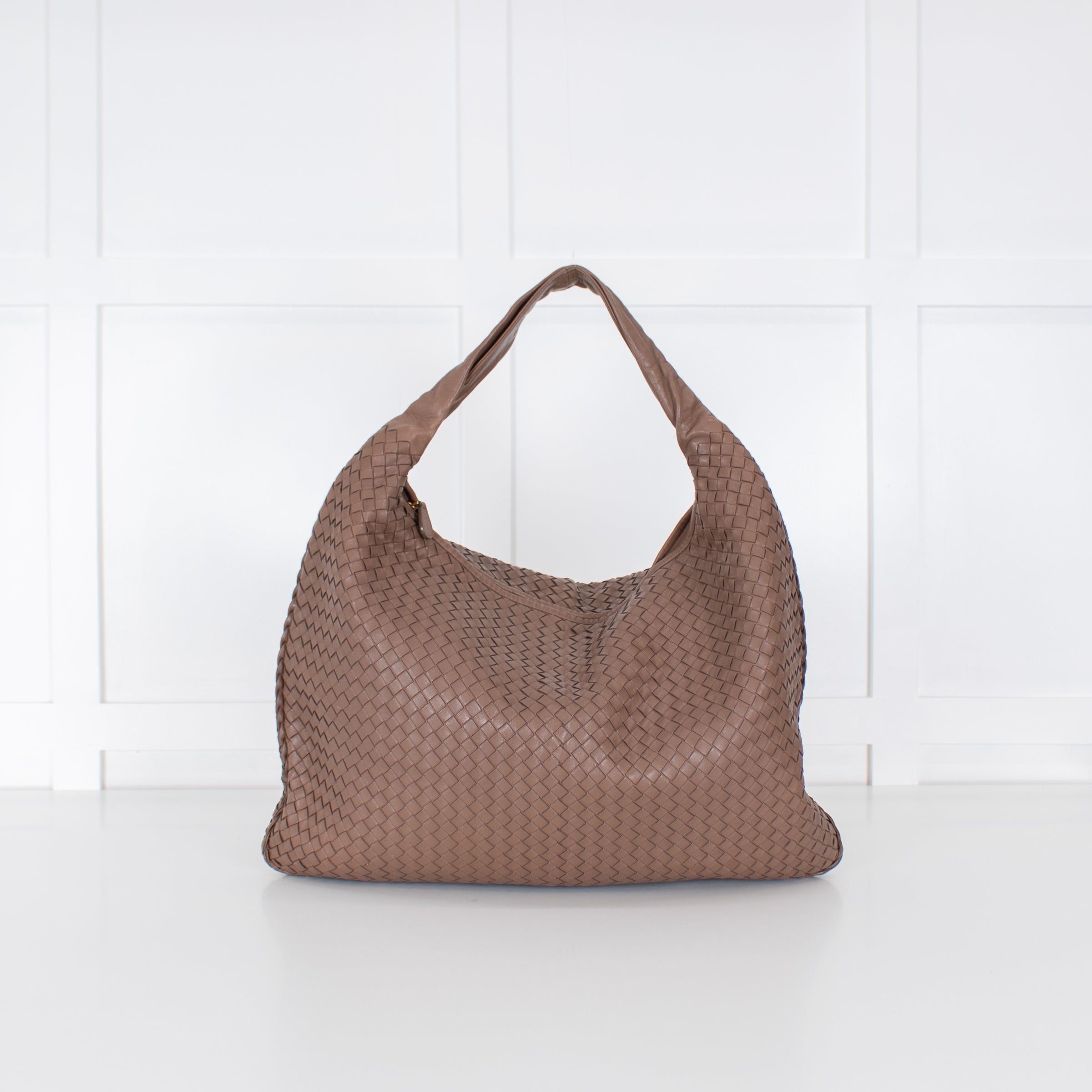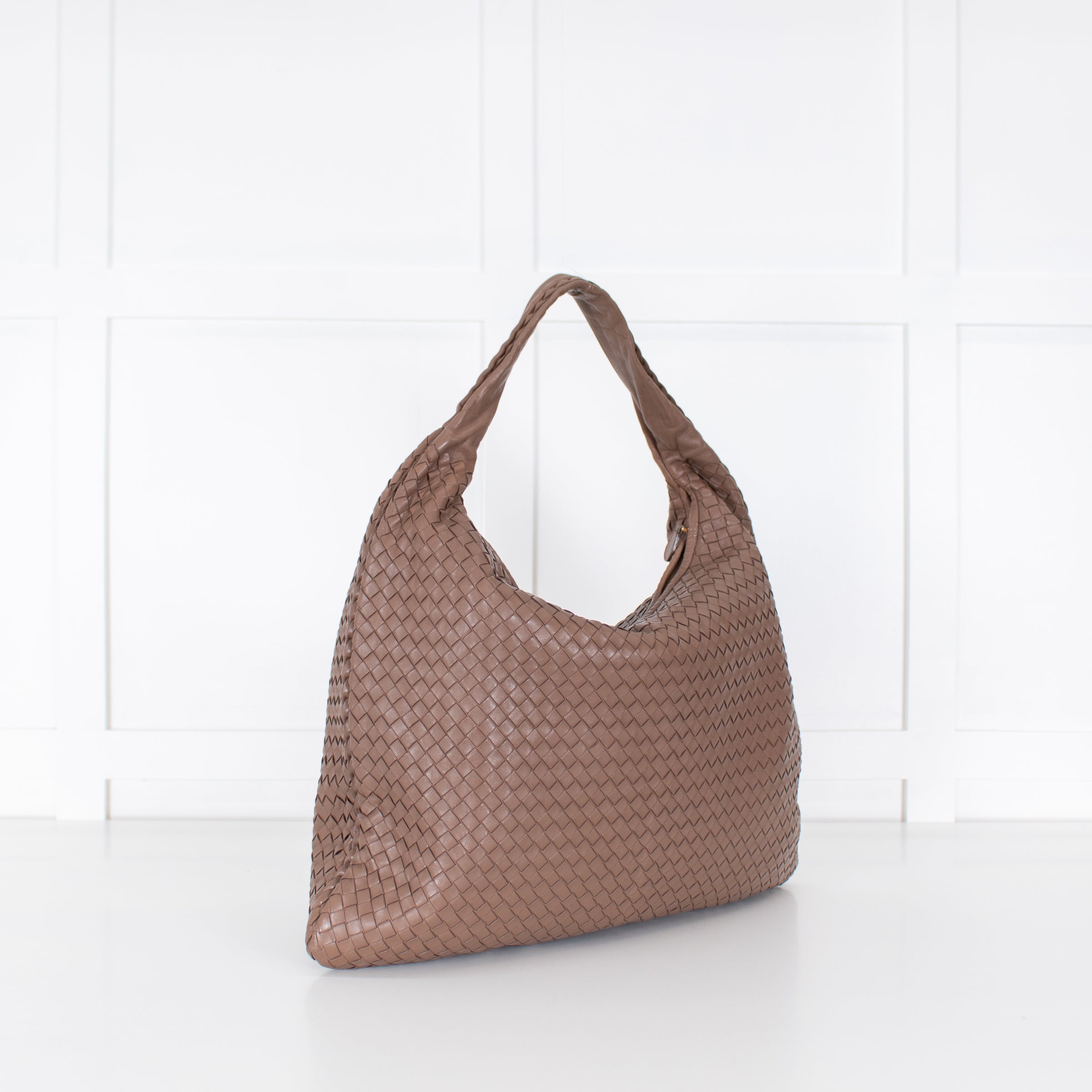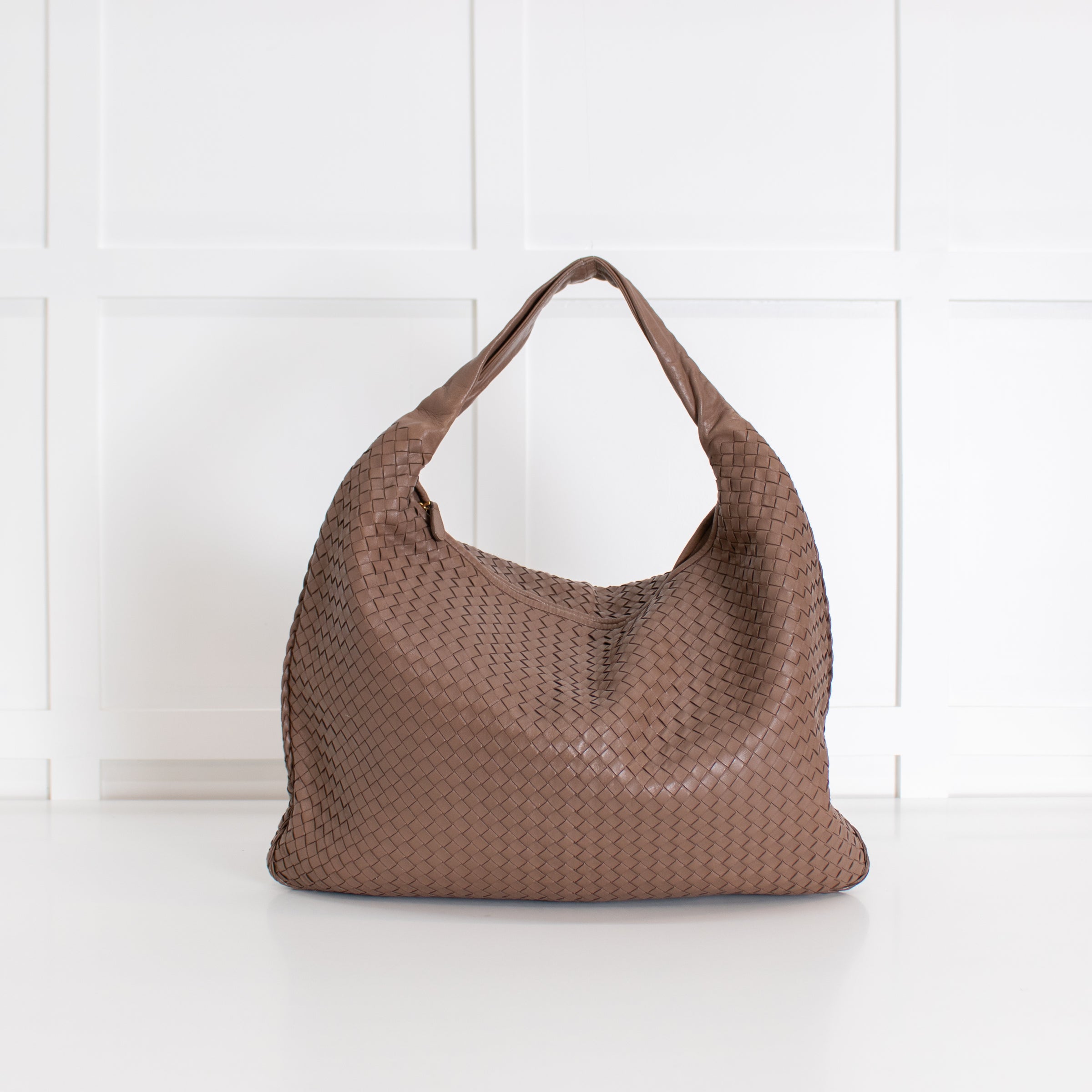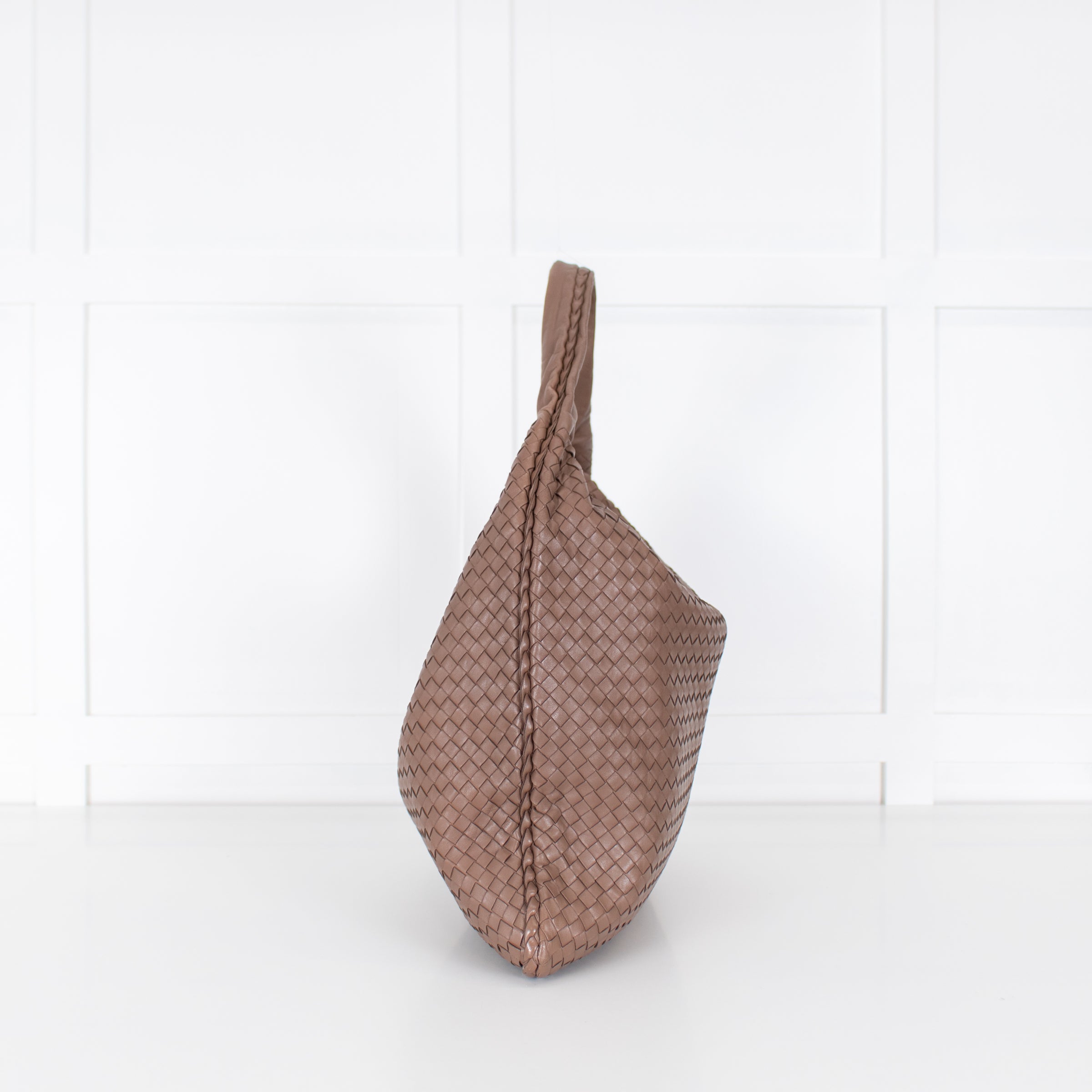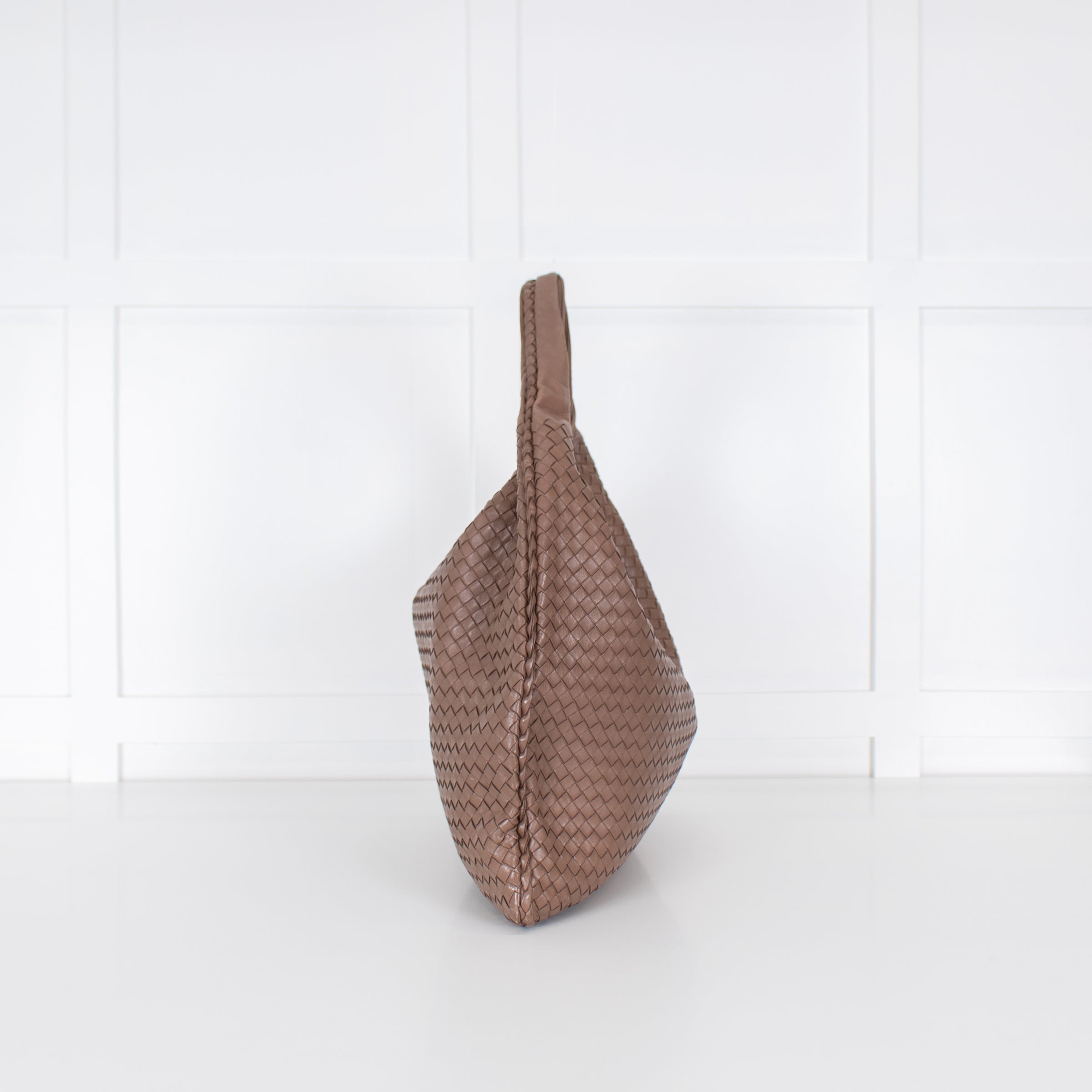Bottega Veneta (2010) brown large hobo bag crafted from the brand's iconic intrecciato leather. This bag features a grown-on handle, an open top, and one main interior compartment with a small zipped pocket. Accompanied by the original dust bag.