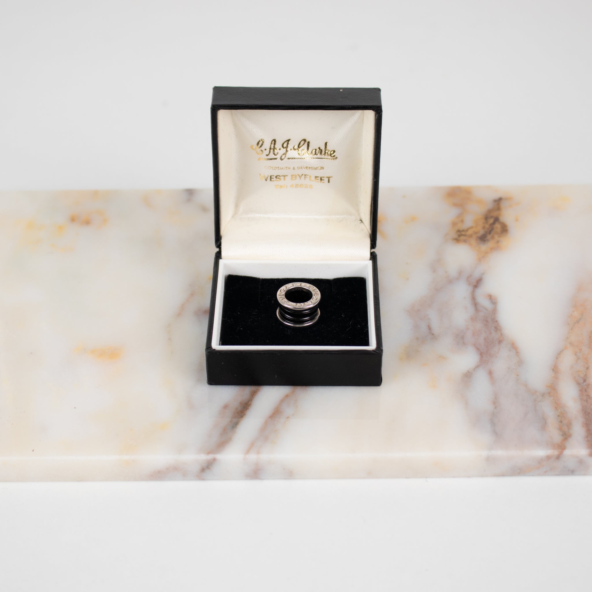 Bulgari gorgeous sterling silver pendant, featuring the word 'Bvlgari' engraved on the silver pendant, and a black inner accent. Please note this is just the pendant; the chain is not included.