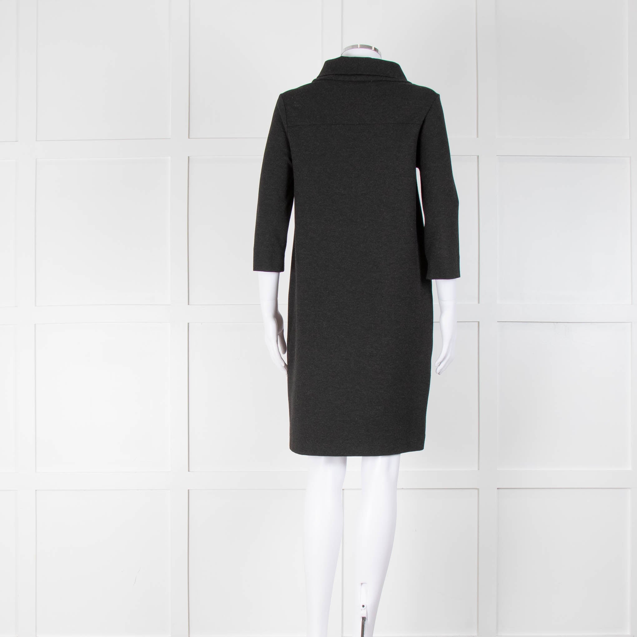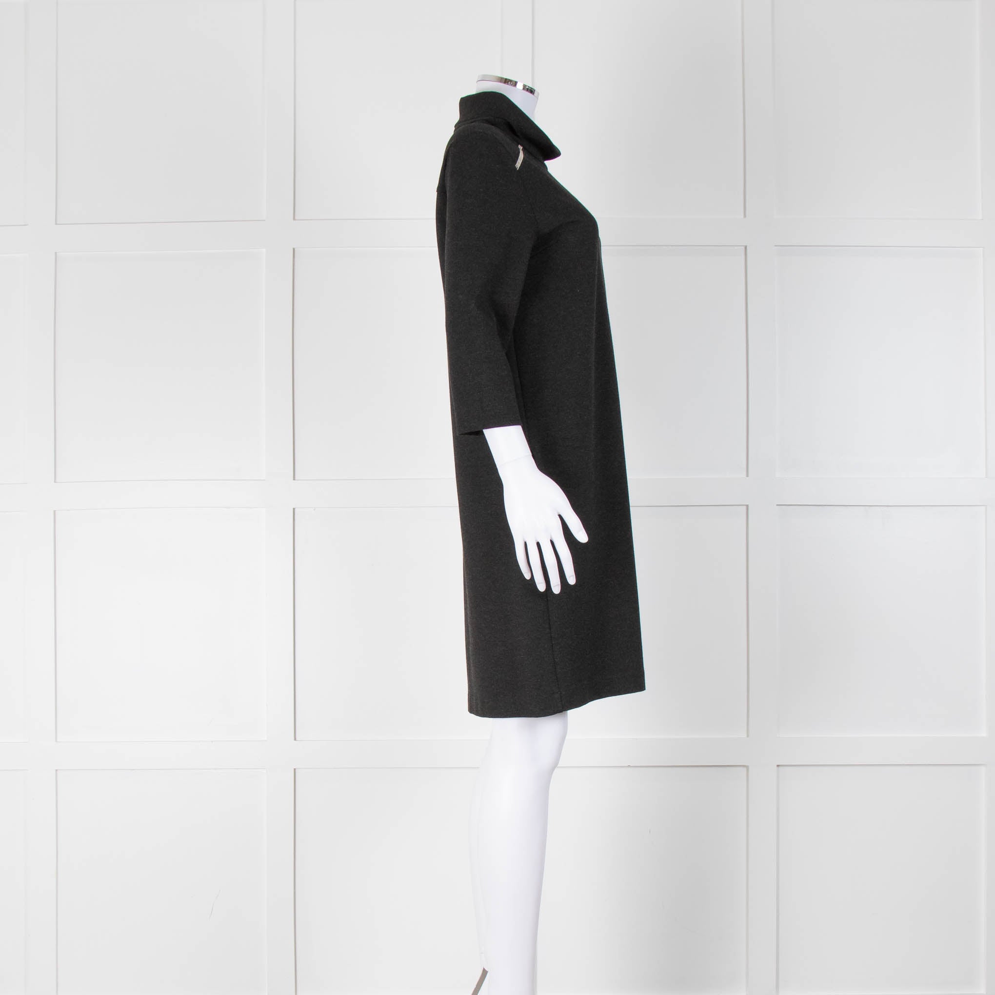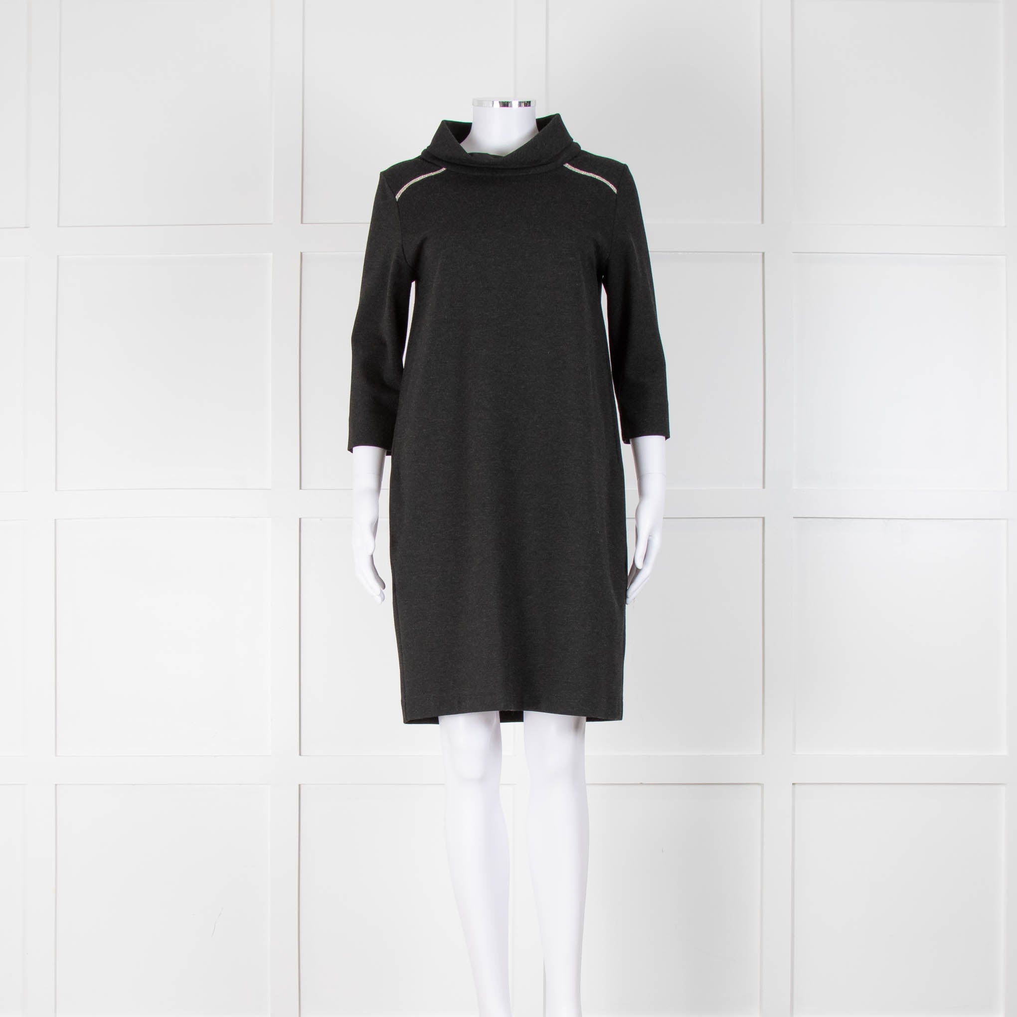 D'EXTERIOR grey dress with silver-tone shoulder detail and a high roll neck. This dress has two side slip pockets and panel detailing.