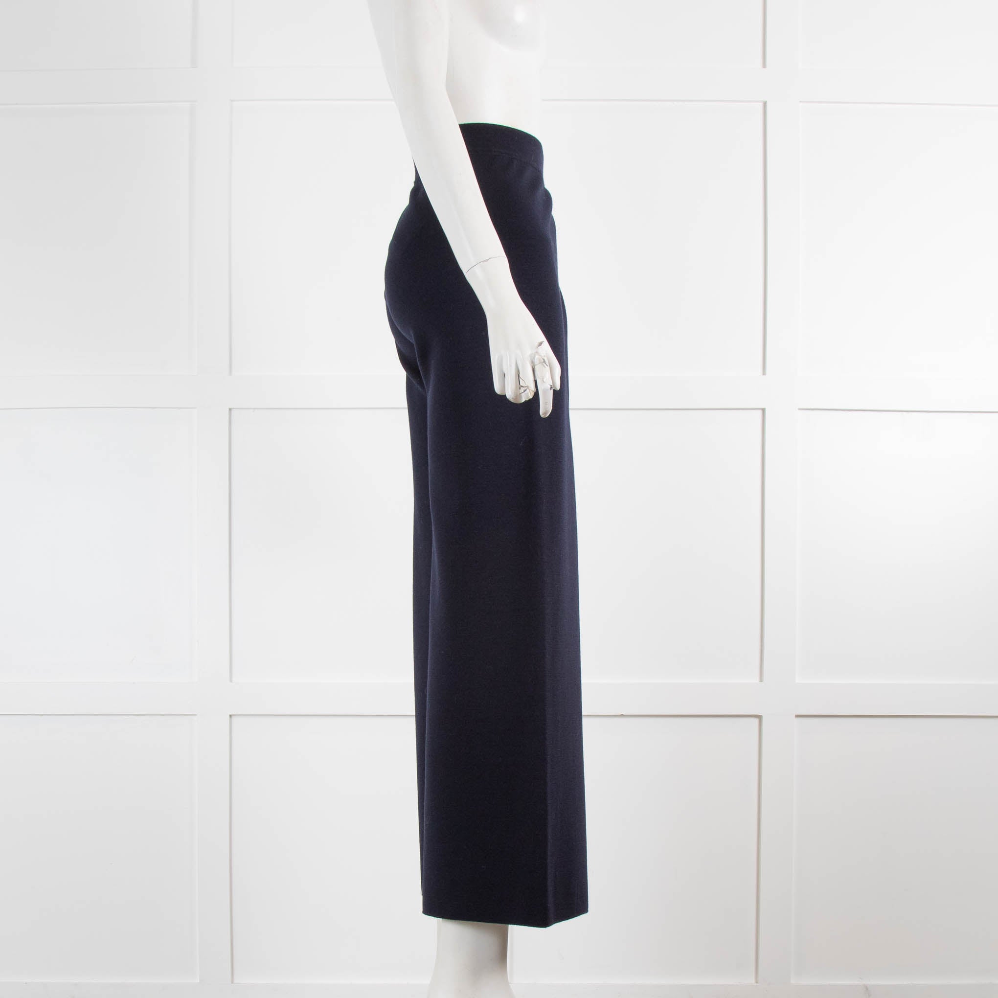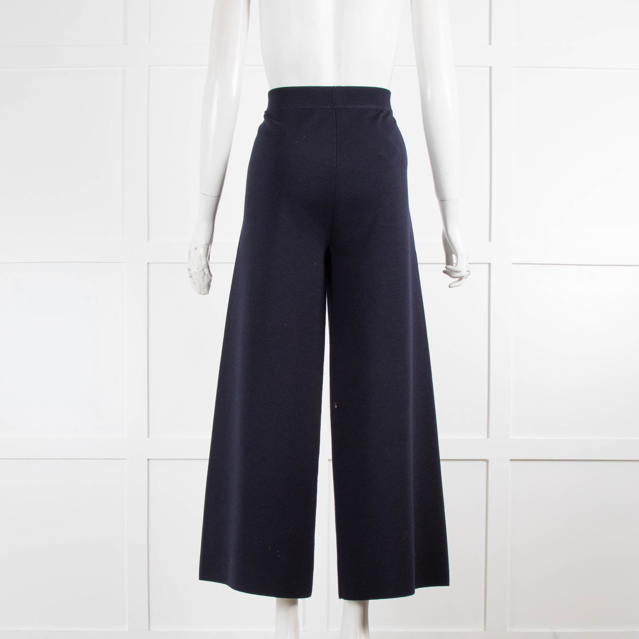 D.Exterior Navy Blue Knit Wide Leg Pull On Trousers