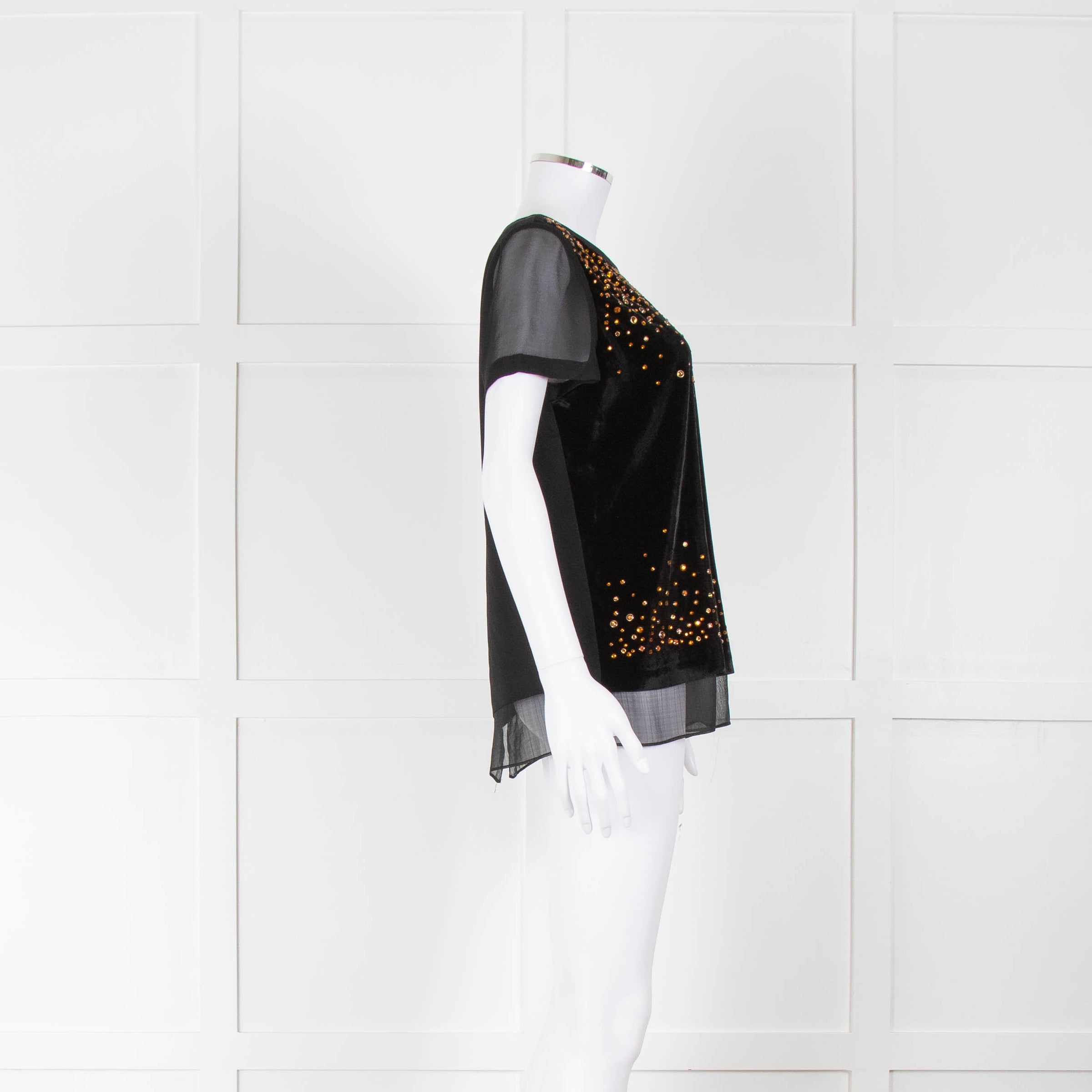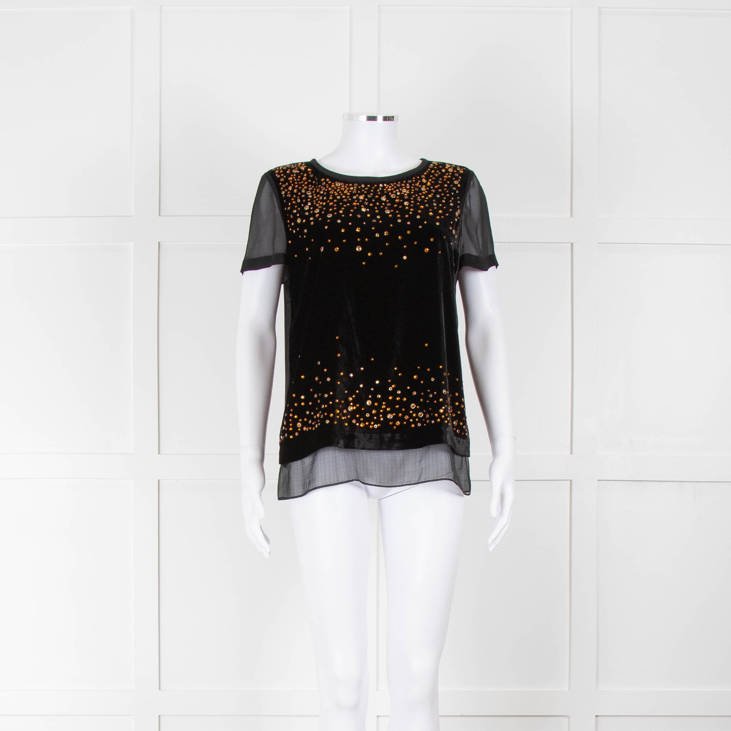 Diane Von Furstenberg Black Velvet Bronze Diamante Short Sleeve Top