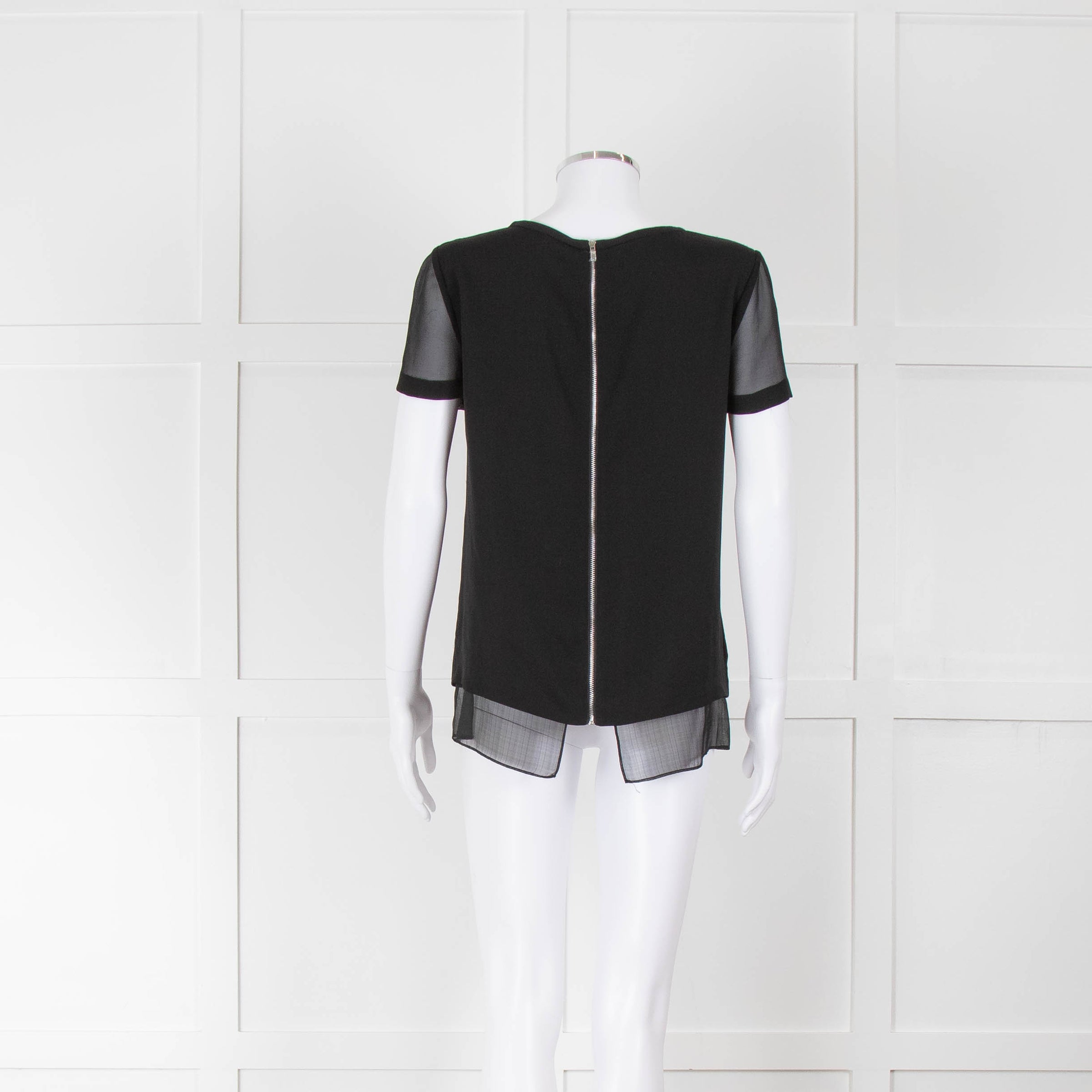 Diane Von Furstenberg black velvet front top with a round neckline short sleeves, bronze tone diamante embellishment, and chiffon detailing.