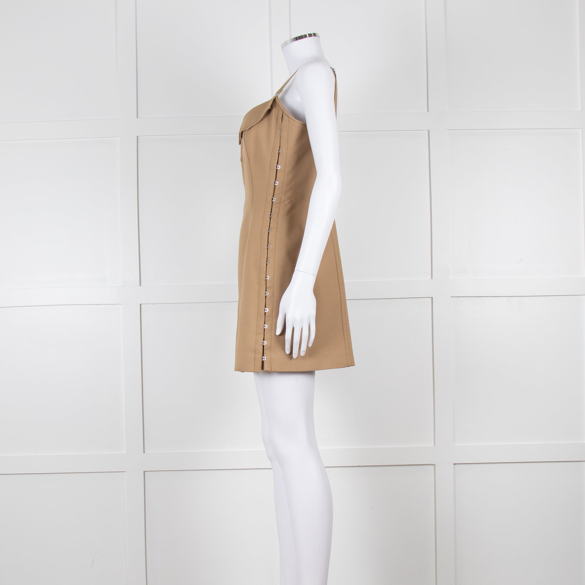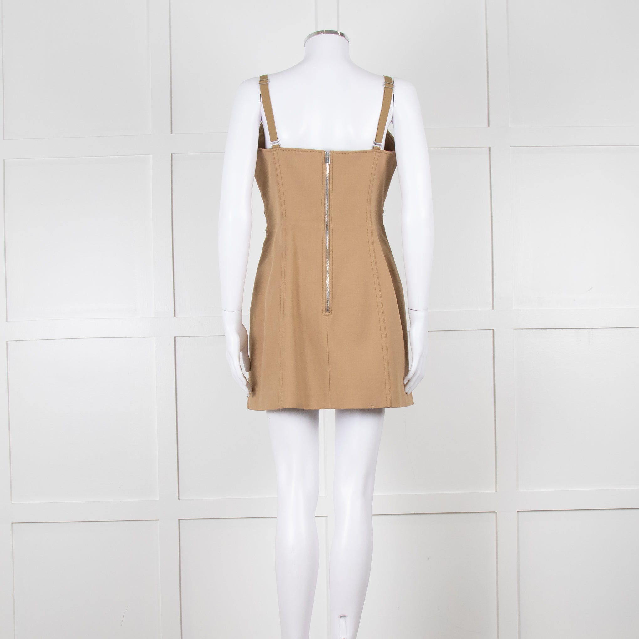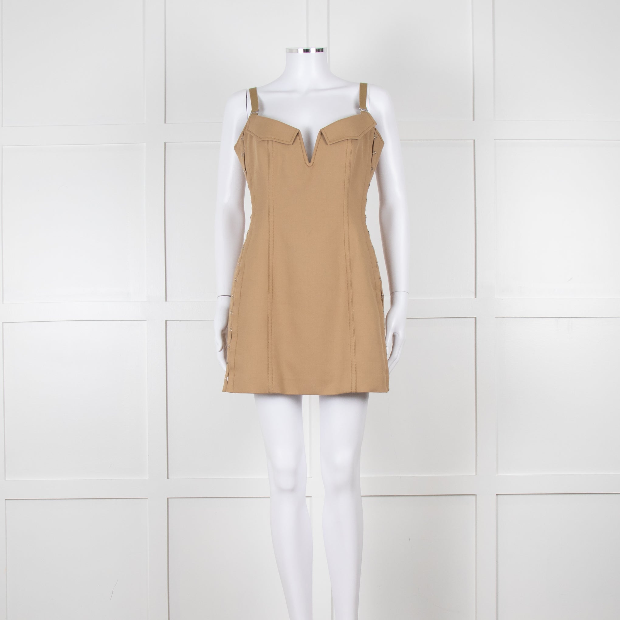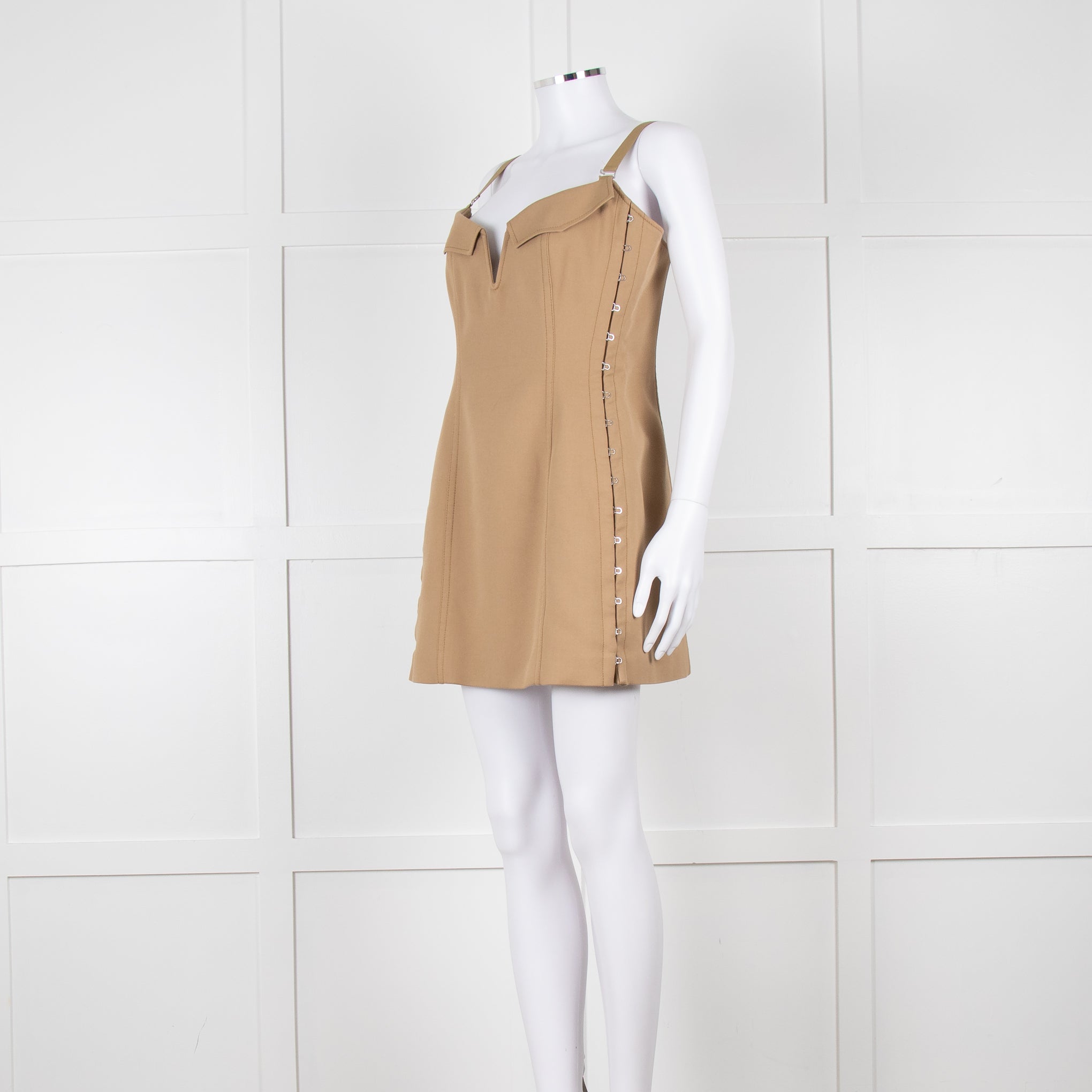 Dion Lee brown corset mini dress with silver-tone metal hook and eye sides and fold-over detailing on the neckline.