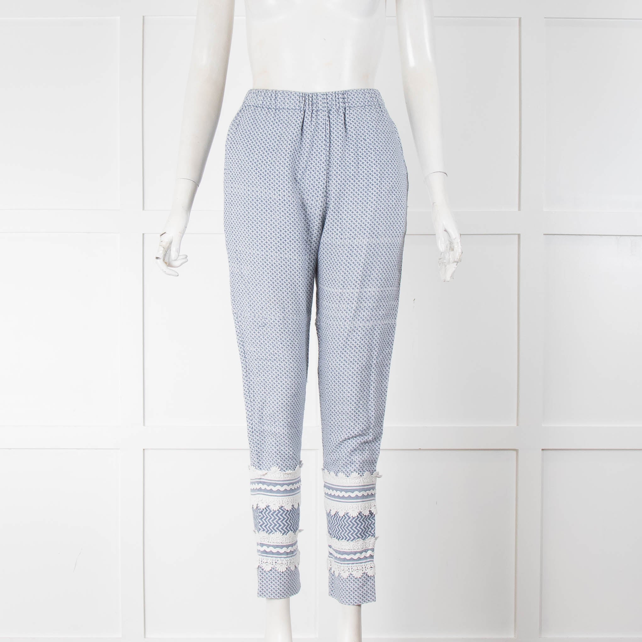Dodo Bar Or Blue White Cotton Lace Detail Slim Leg Trousers
