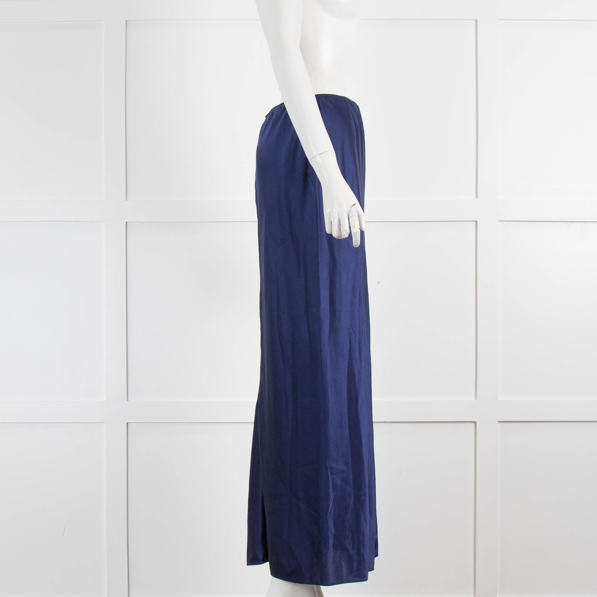 Dorothee Schumacher navy blue satin slip skirt crafted from a silk blend material cut on the bias for a light stretch and comfortable fit, this skirt features an elasticated waistband and built-in lining.