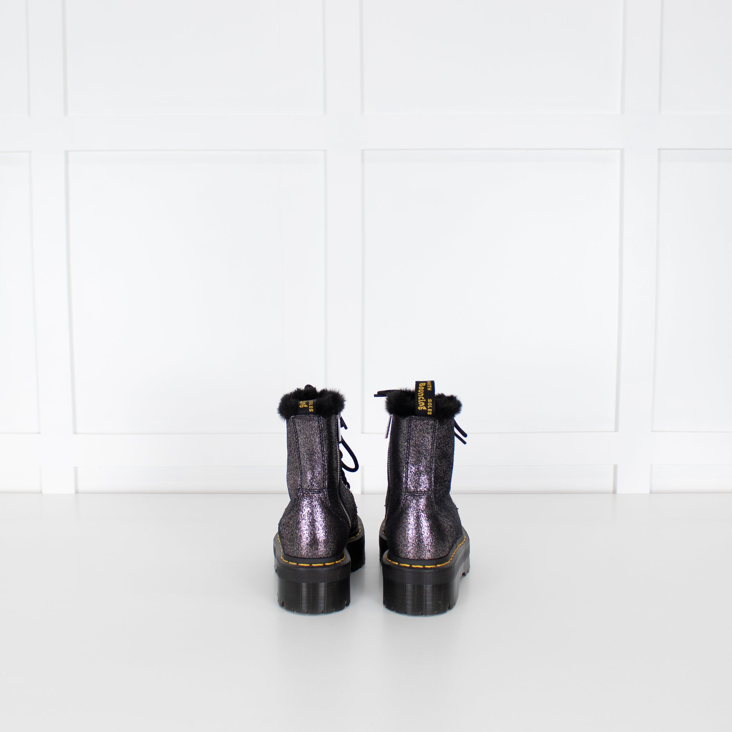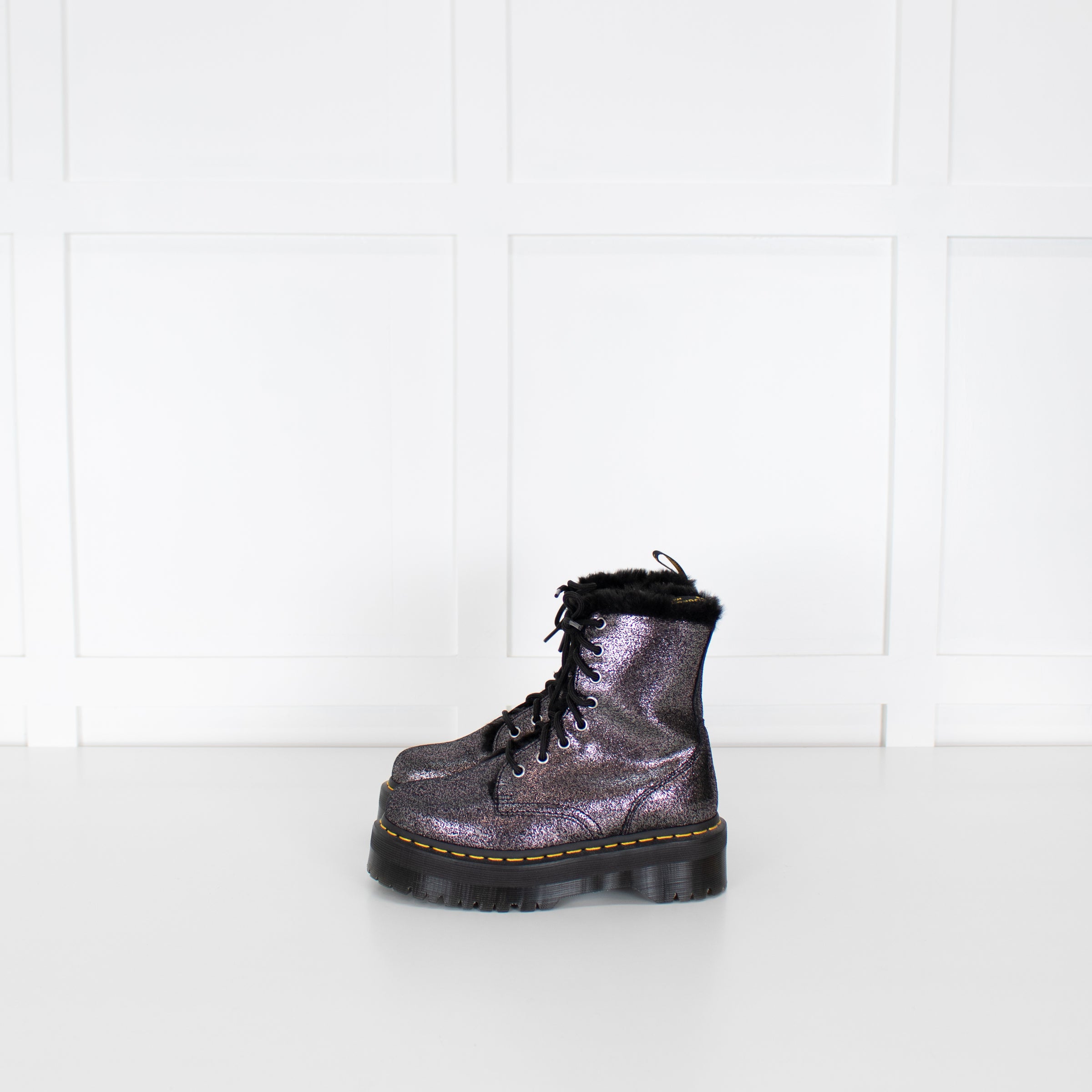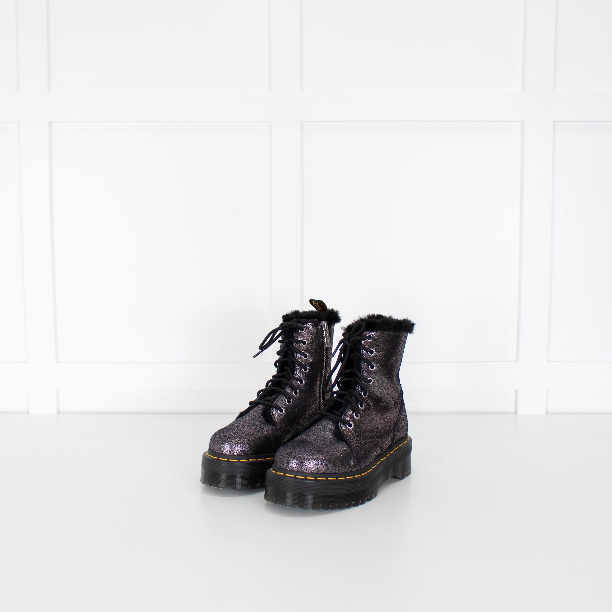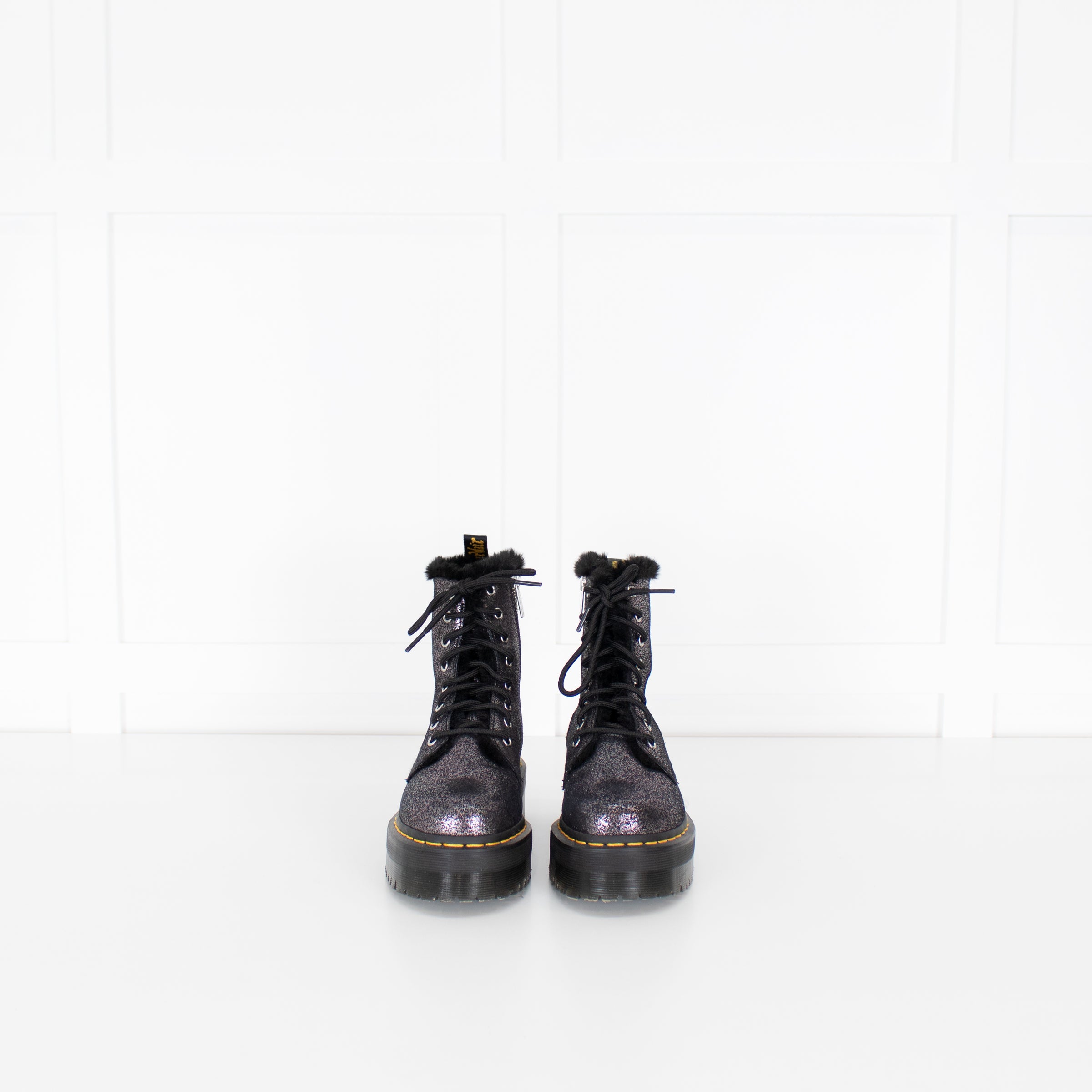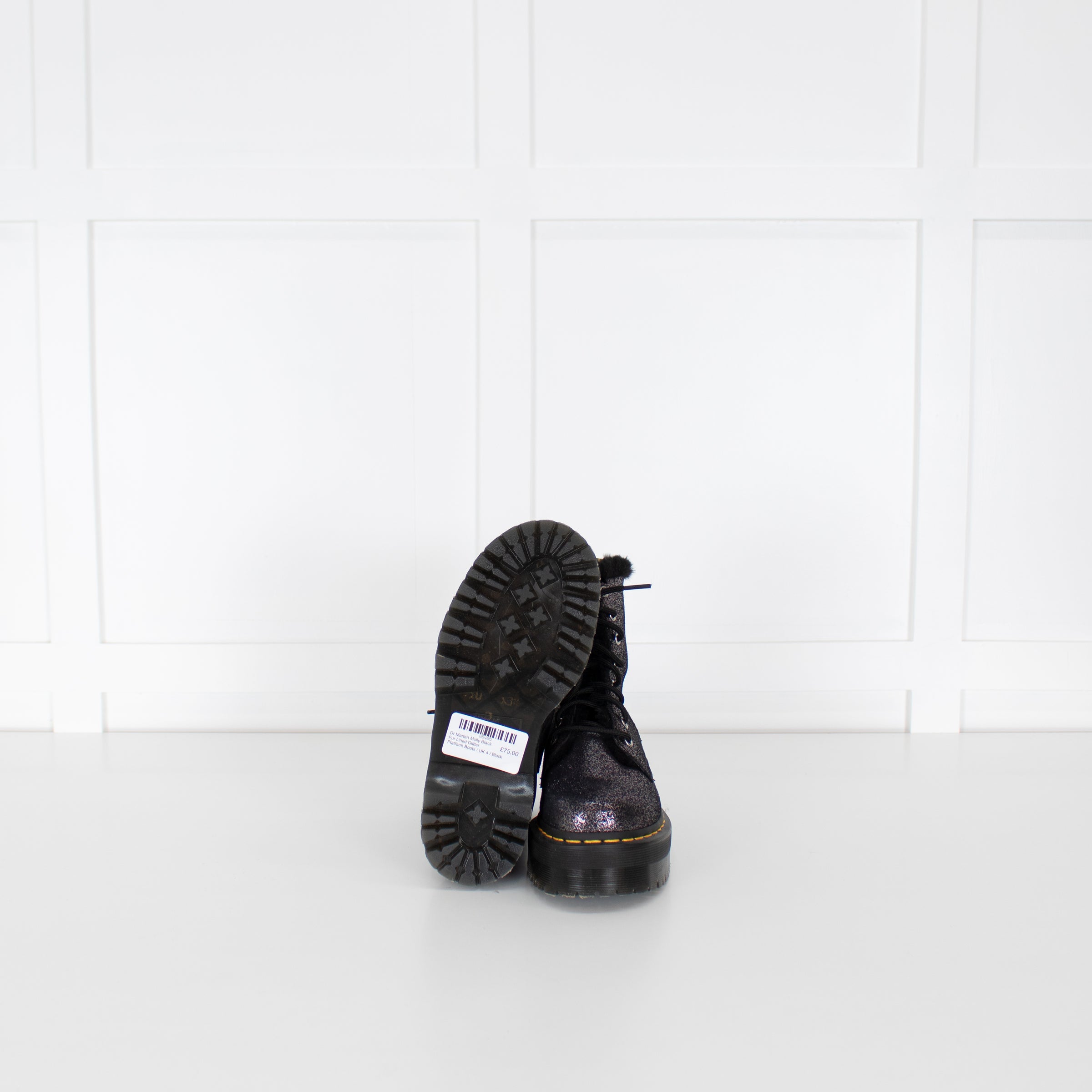 Dr Marten Molly Black Fur Lined Glitter Platform Boots