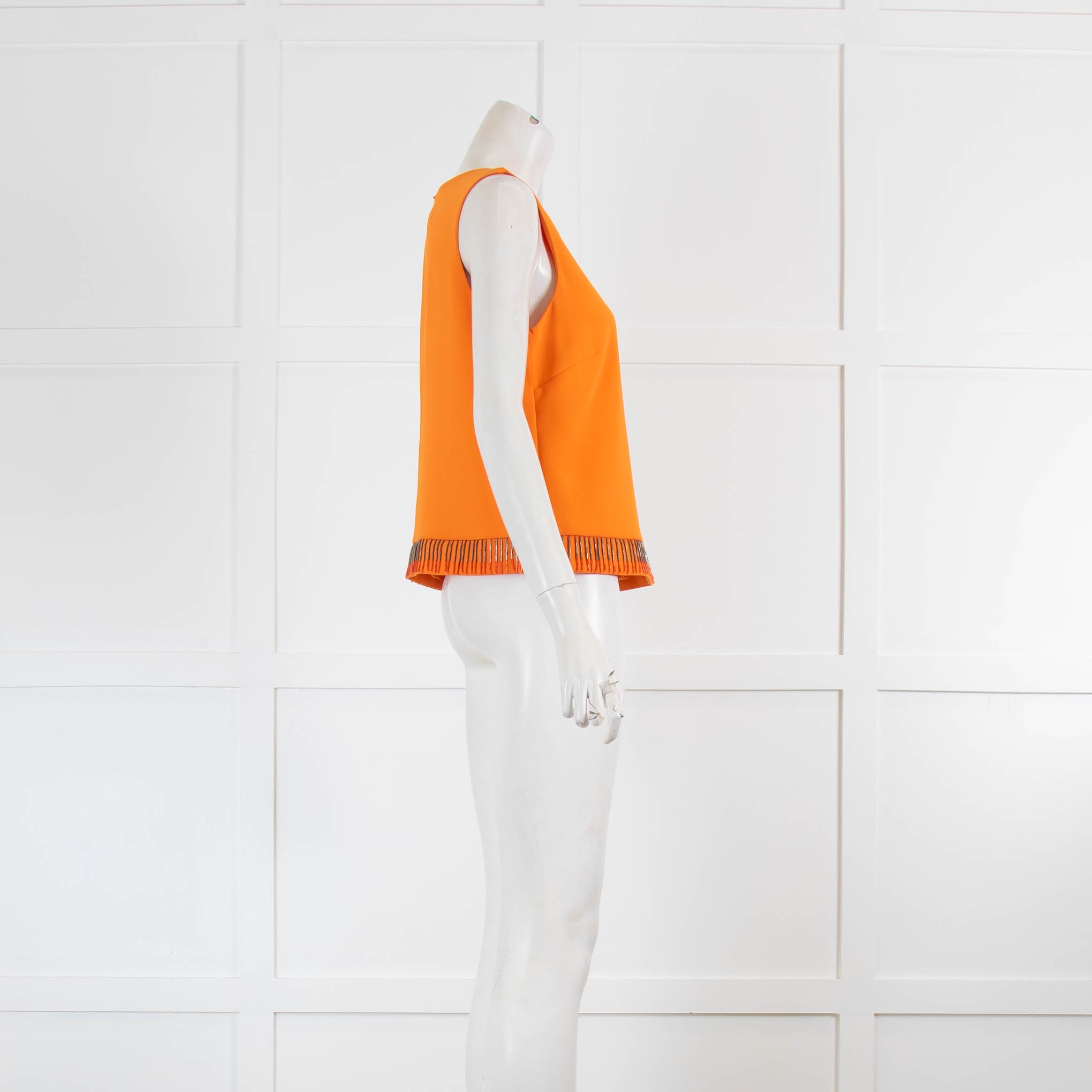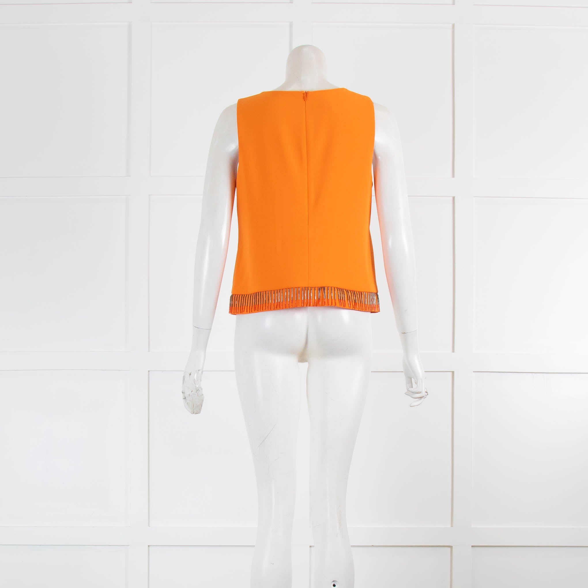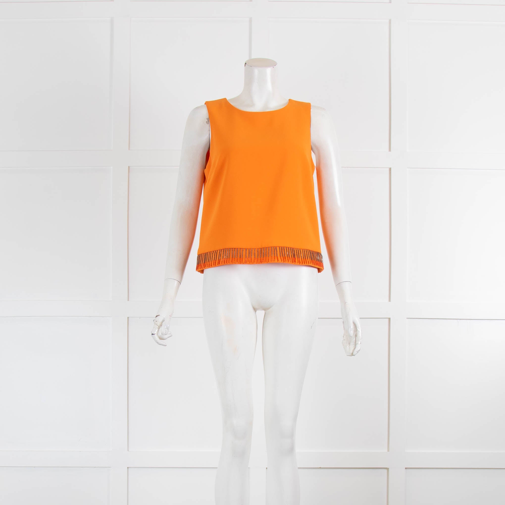 Emporio Armani orange sleeveless top with bead hem fringing. Features a round-shaped neckline, and concealed rear zip fastening.