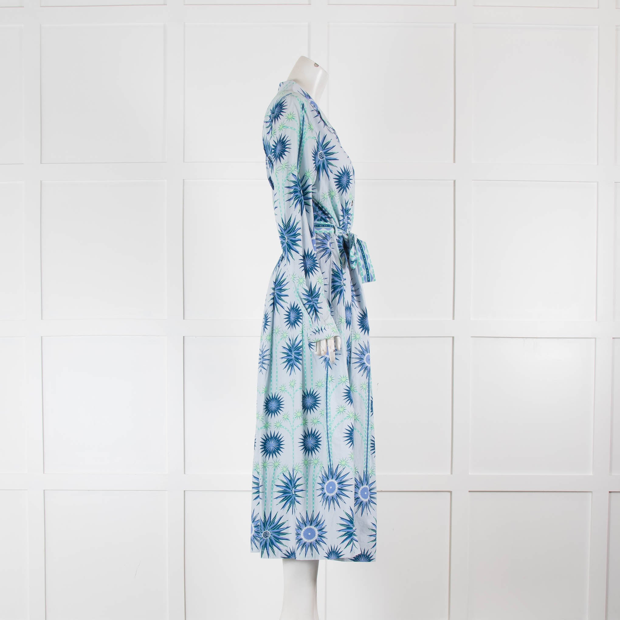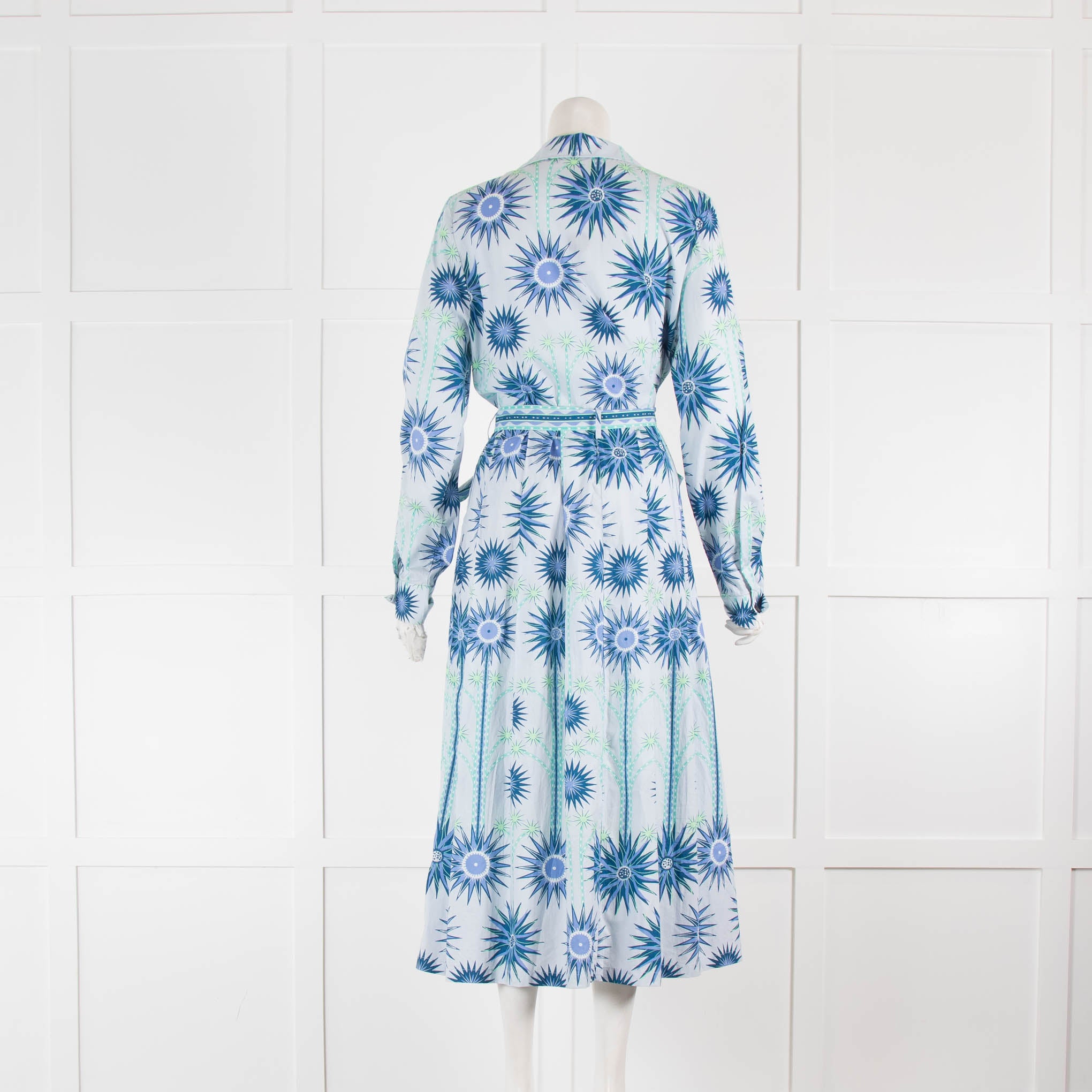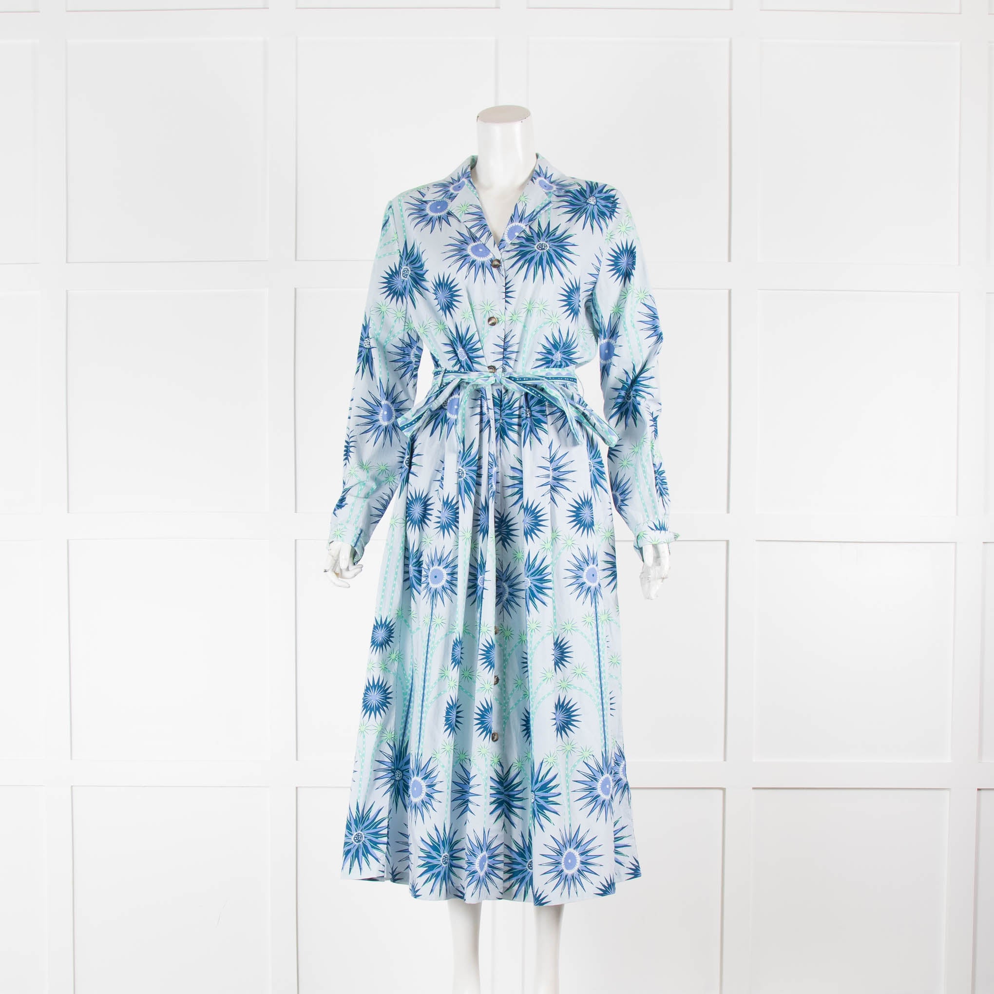 Emporio Sirenuse Pale Blue Star Flower Belted Long Sleeve Dress