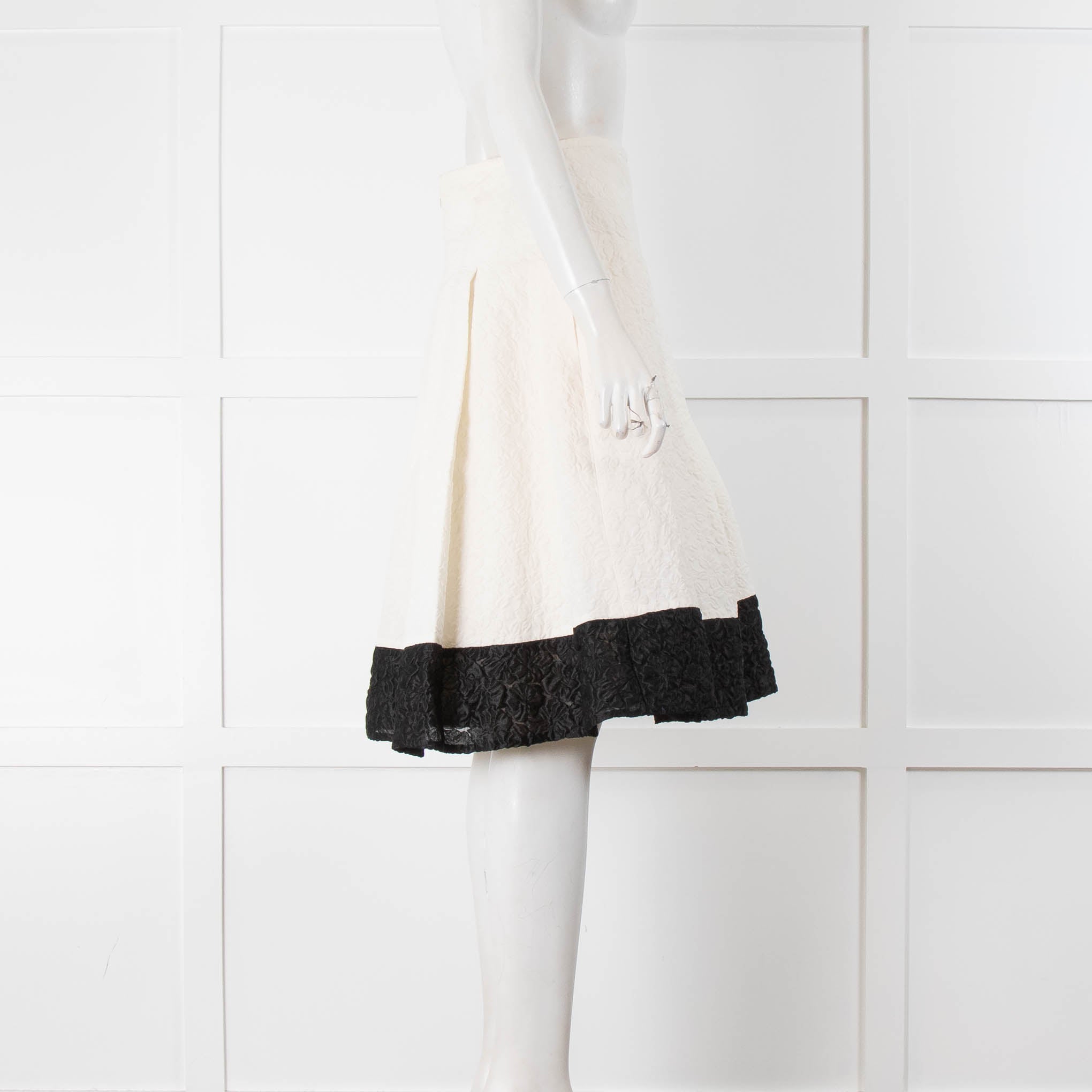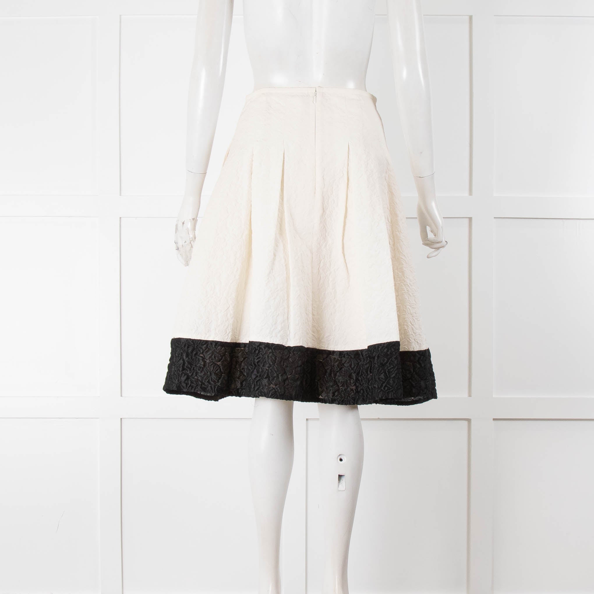 Erdem Cream Floral Textured Pleated Skirts With Black Trim
