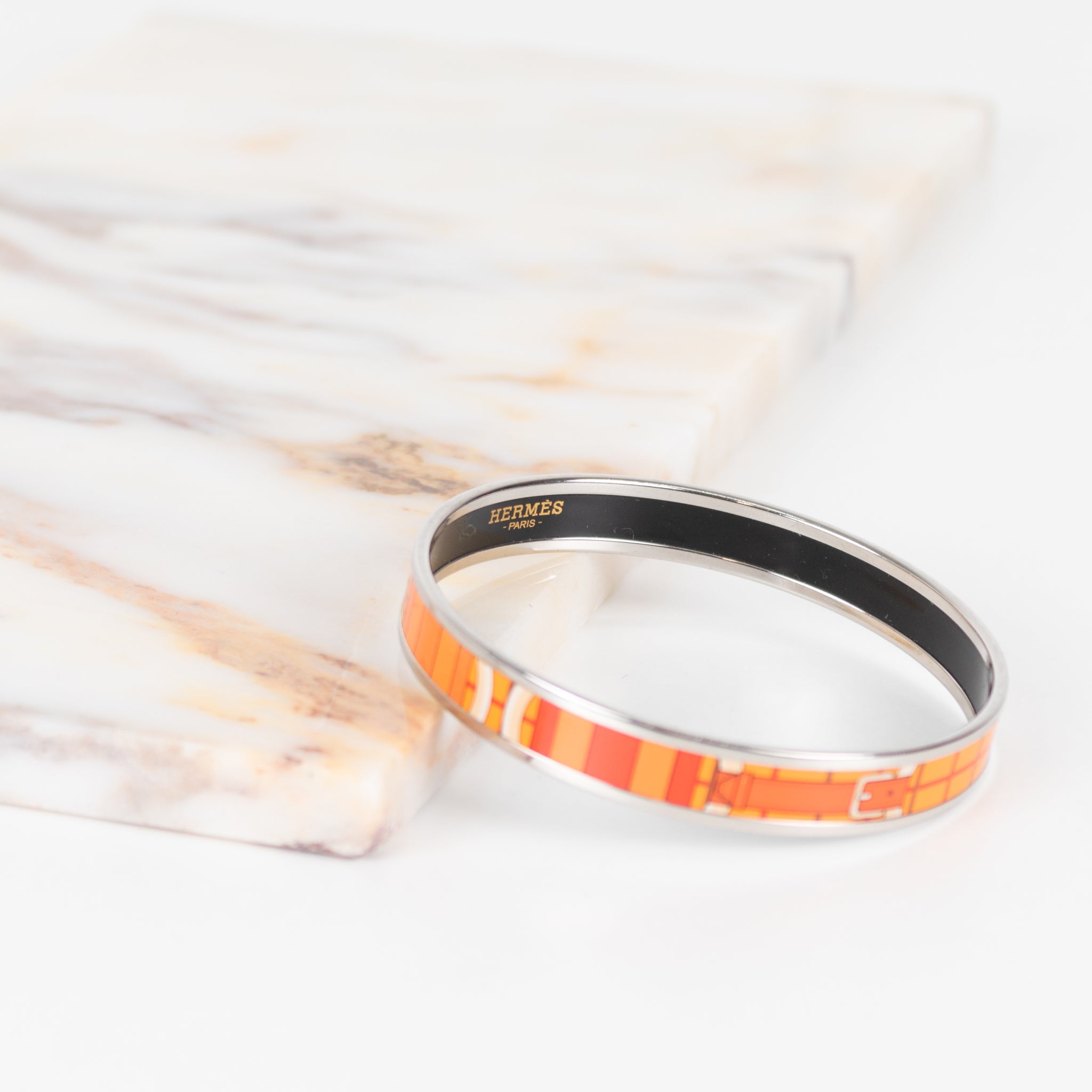 Hermes orange and silver enamel sellier bracelet stamped inside with 'Hermes Paris' and 'Made in France'. Accompanied by the original dust bag and box, making it the perfect gift this Christmas.