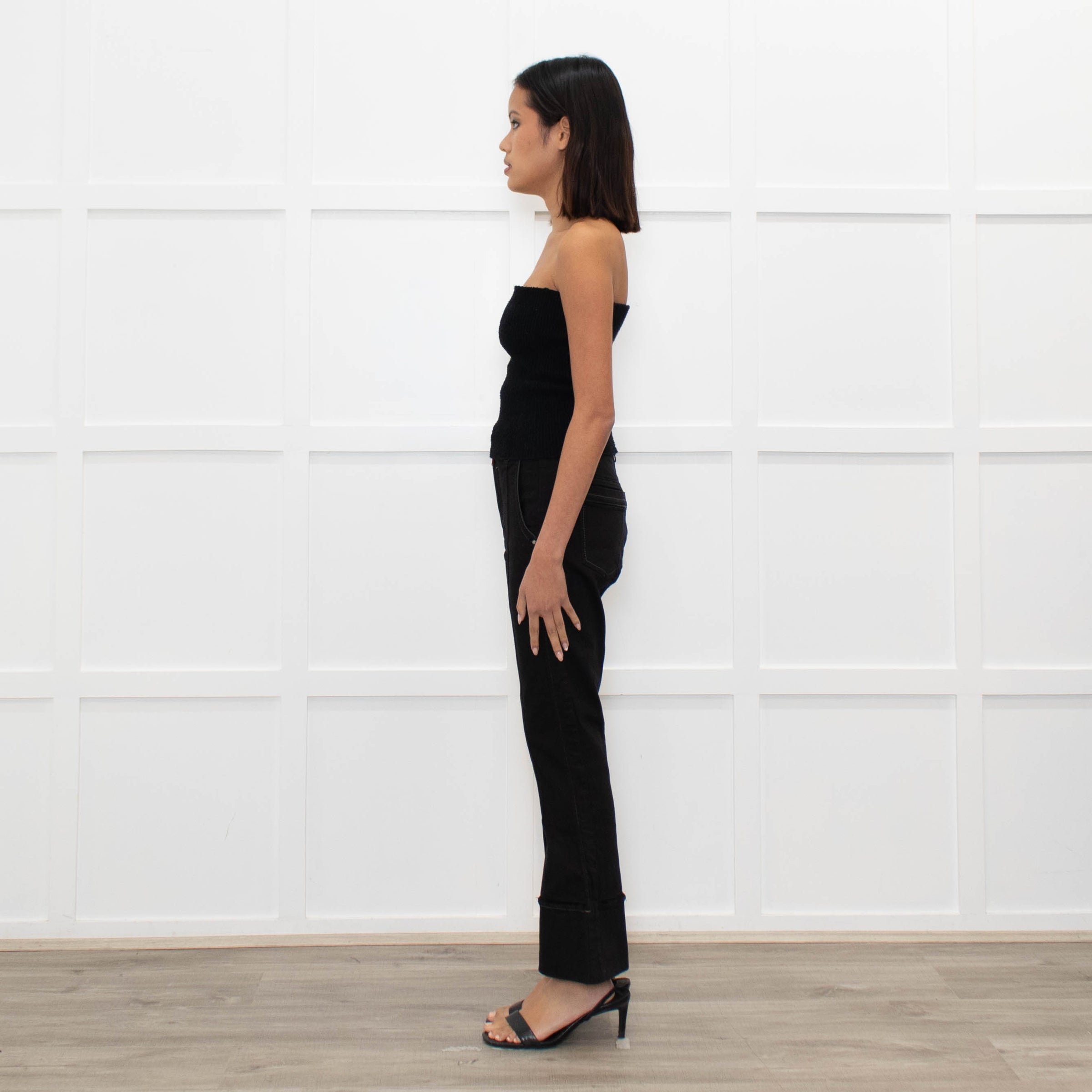 High Black Denim Flared Trousers