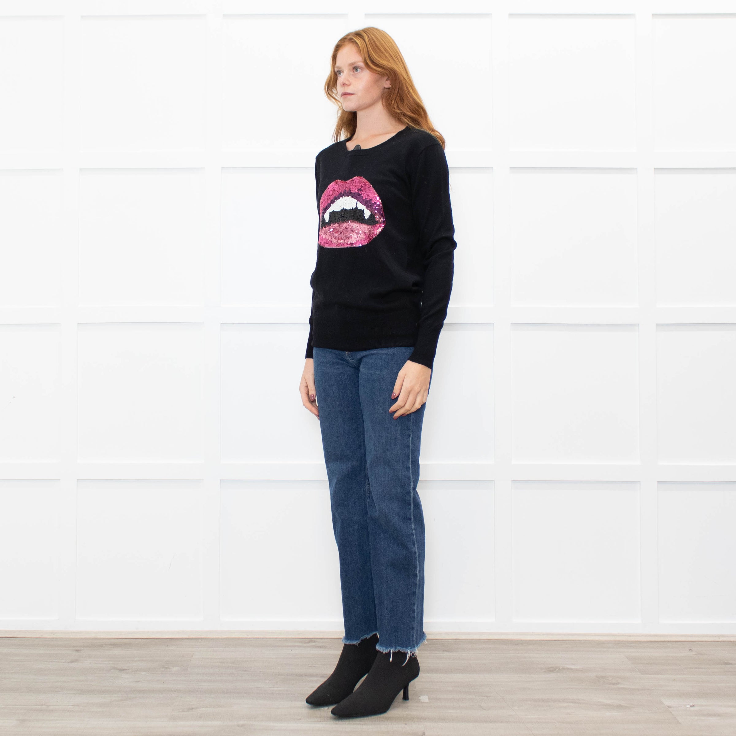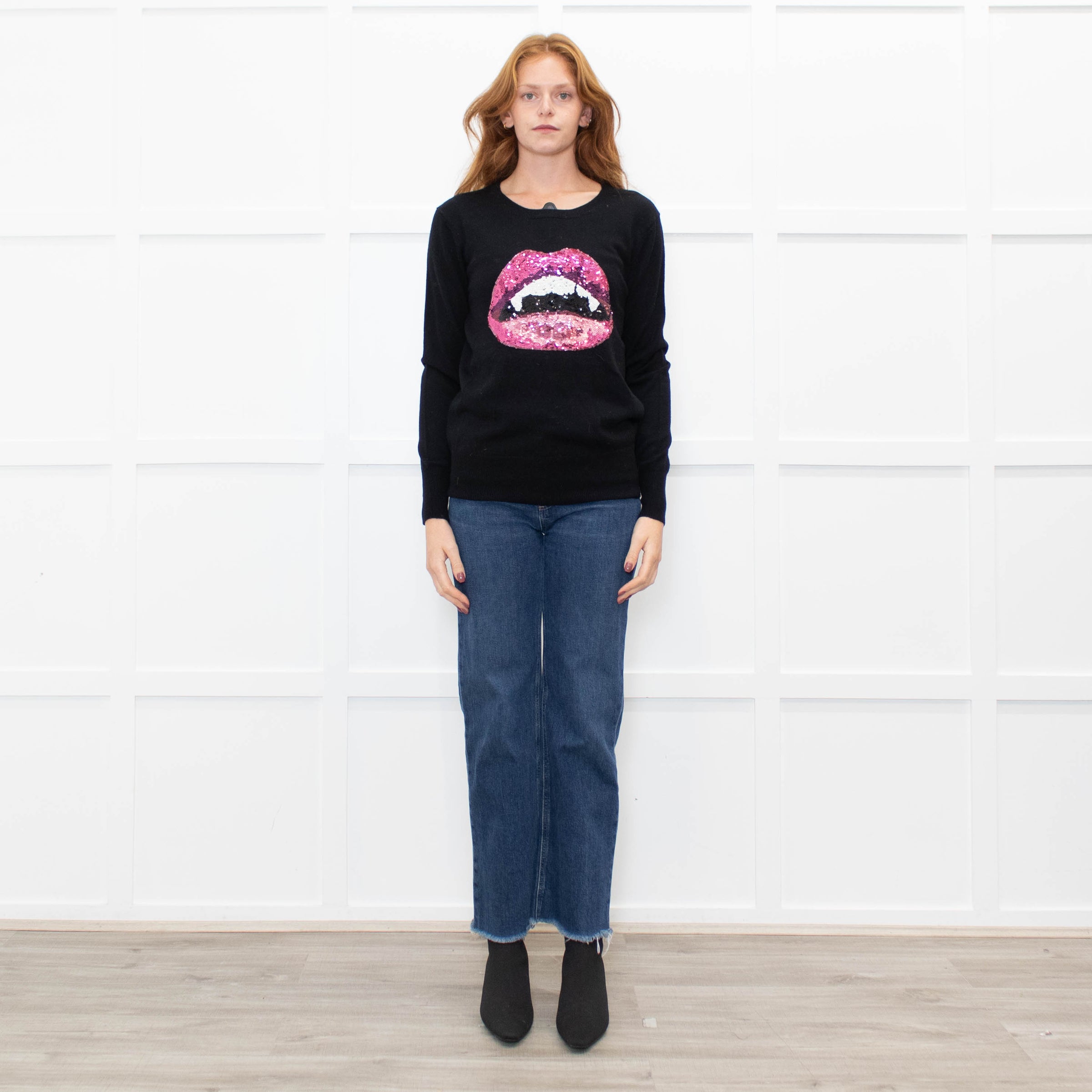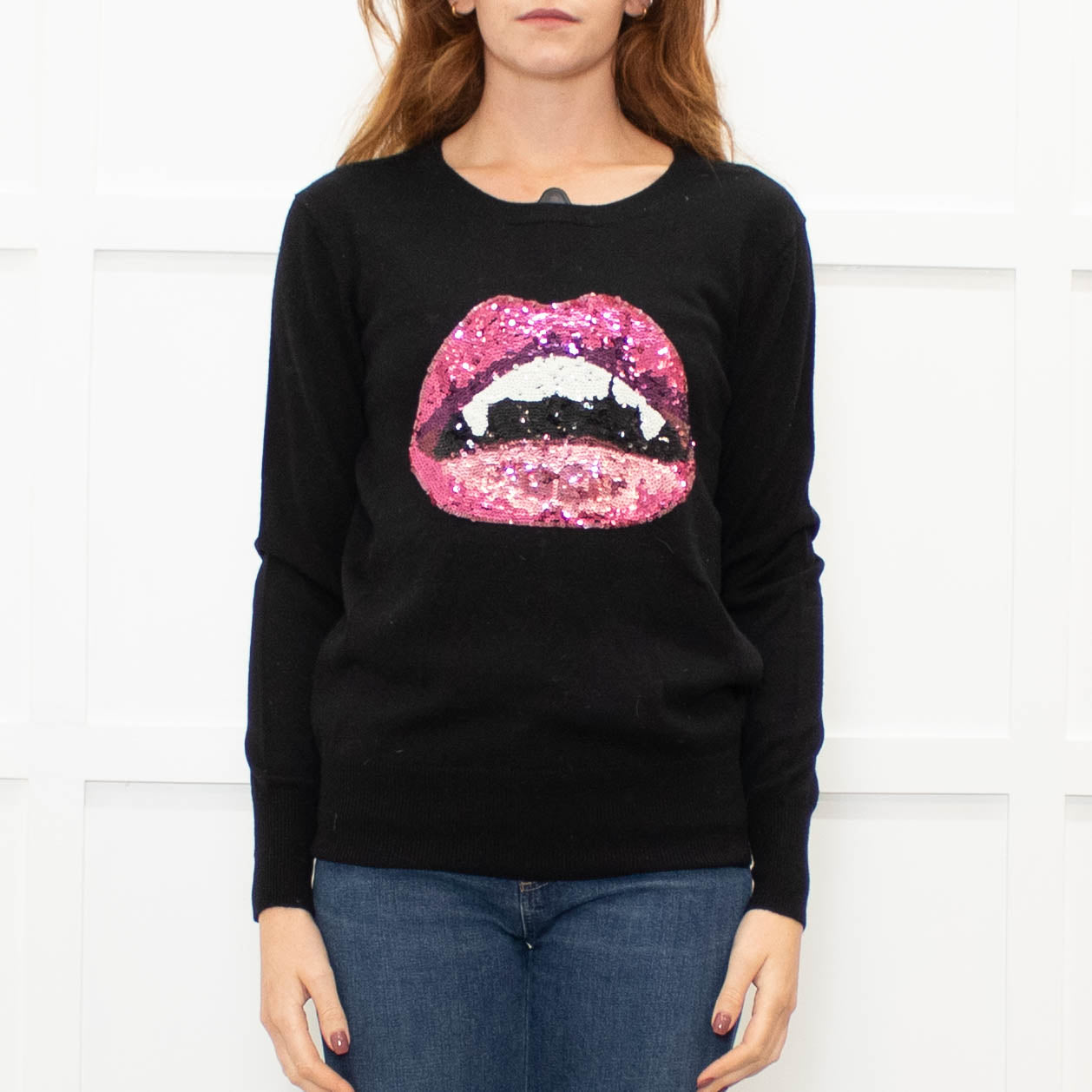Markus Lupfer Black Pink White Lips Sequins Merino Wool Jumper