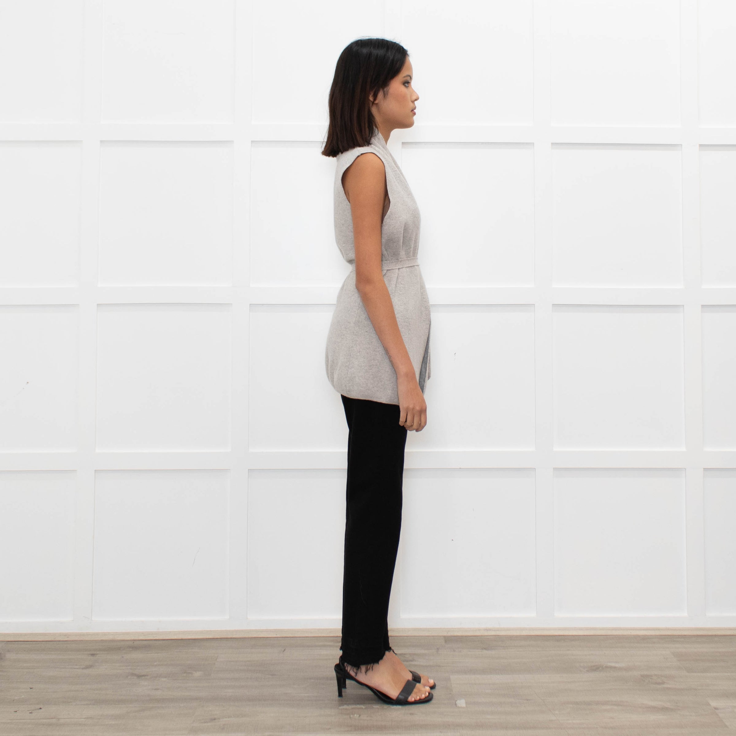 N.Peal grey cashmere sleeveless gilet with a matching waist tie.