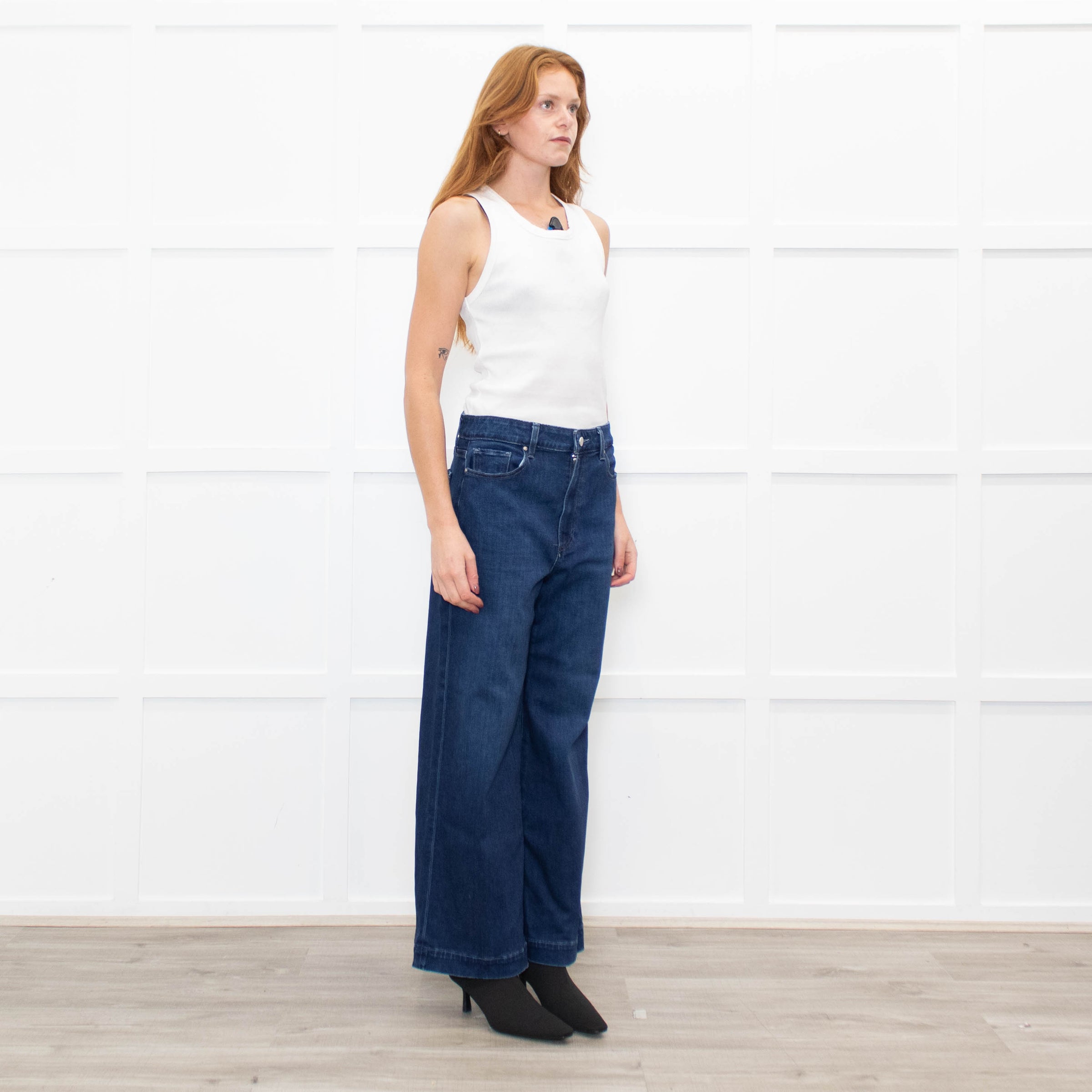 Paige Dark Blue Anessa Wide Leg Jeans