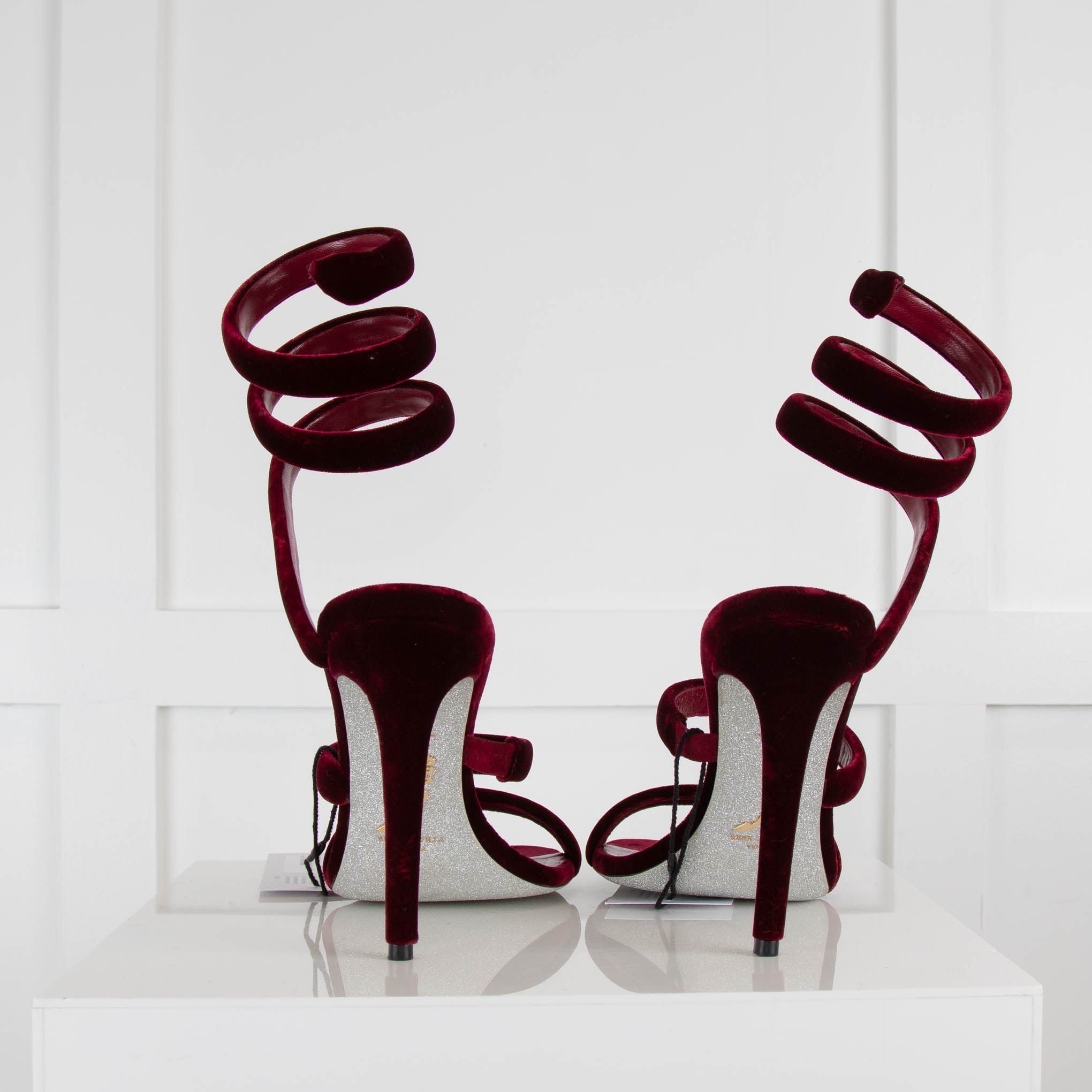 Rene Caovilla Burgundy Velvet Stilettos with Sparkle Soles