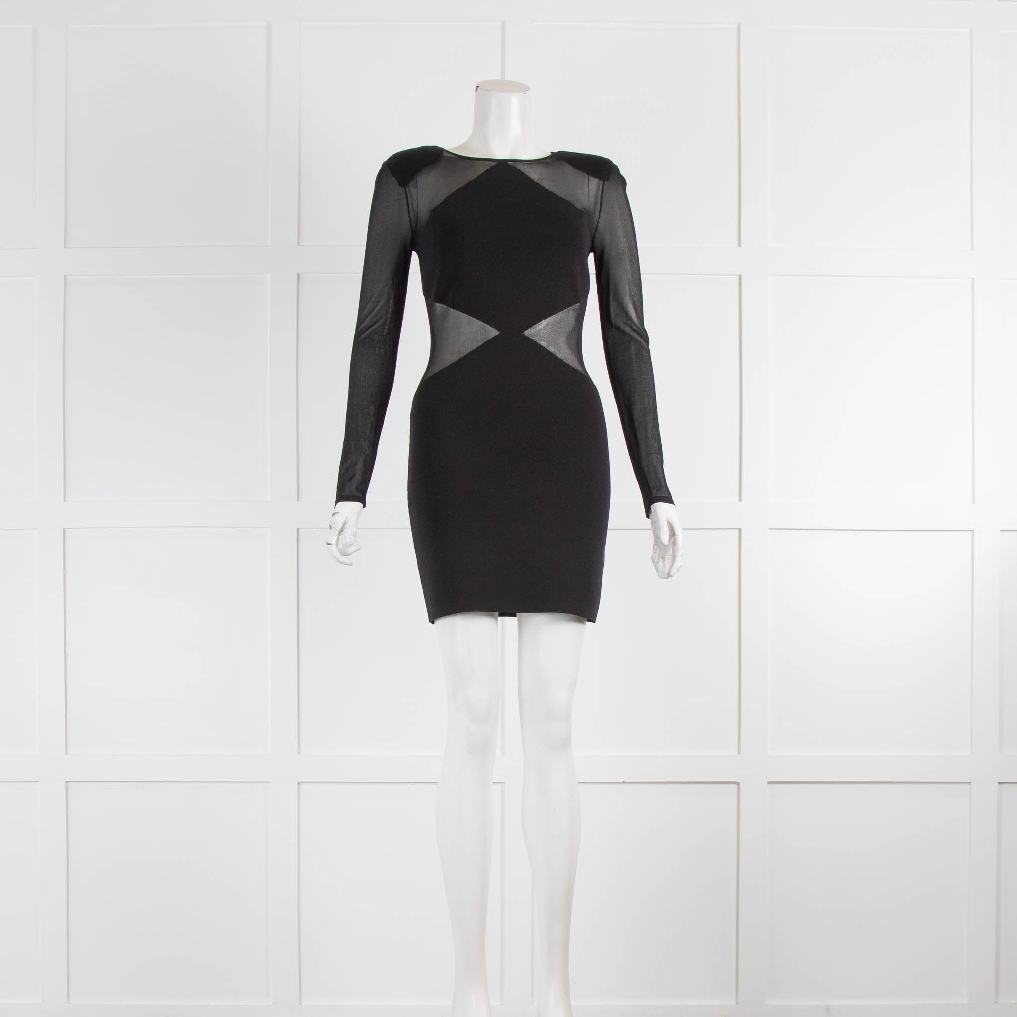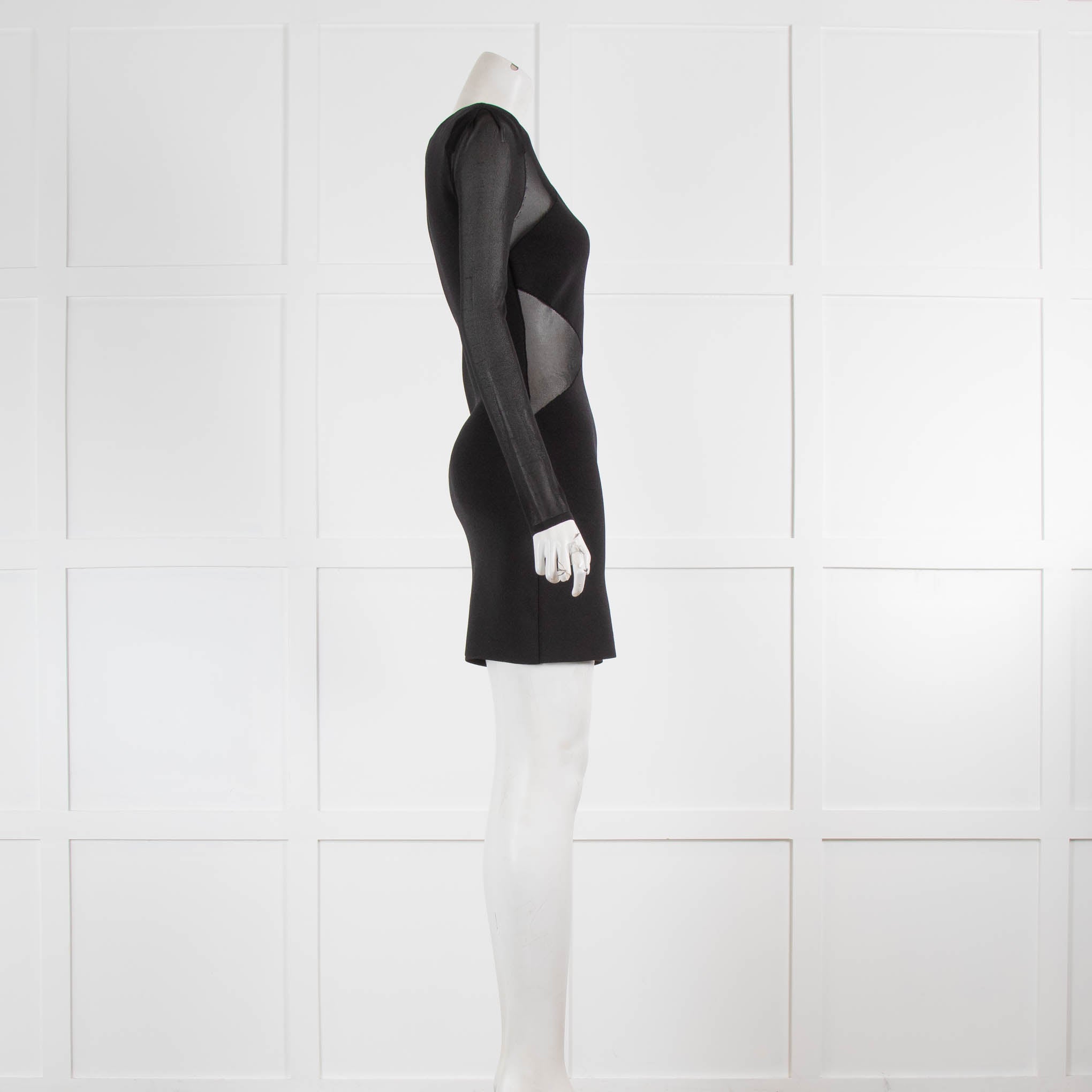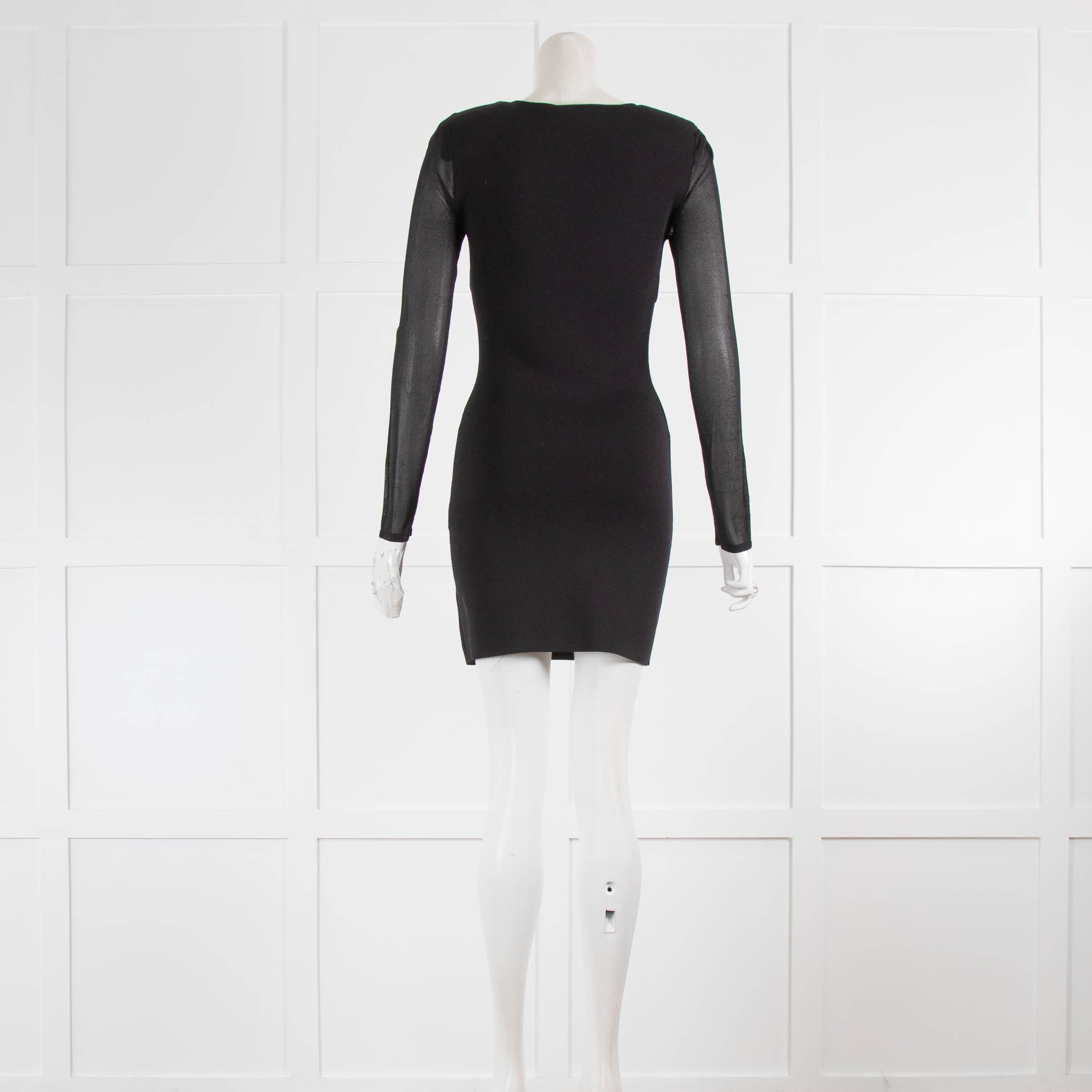 Self Portrait Black Body Con Dress With Long Sheer Arms
