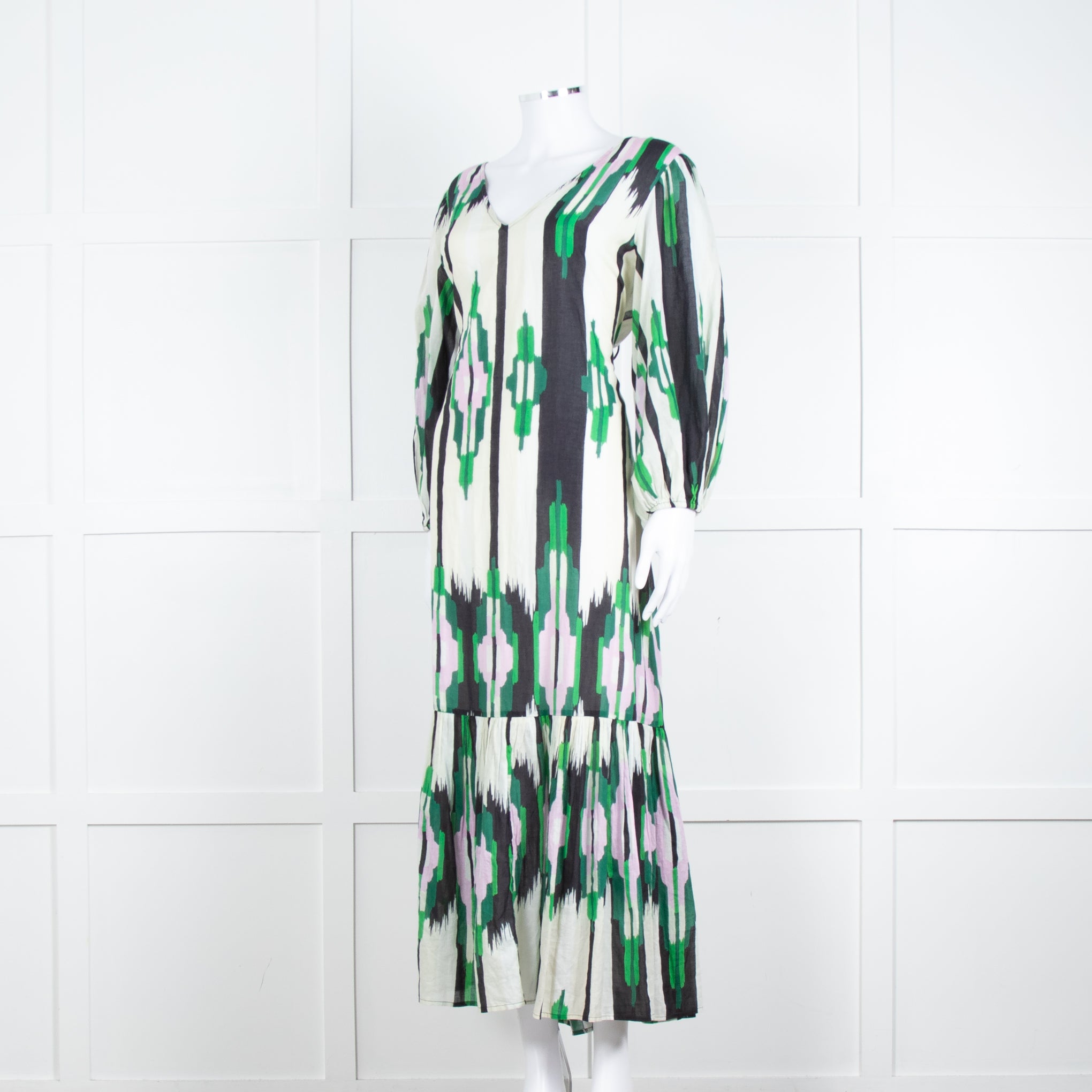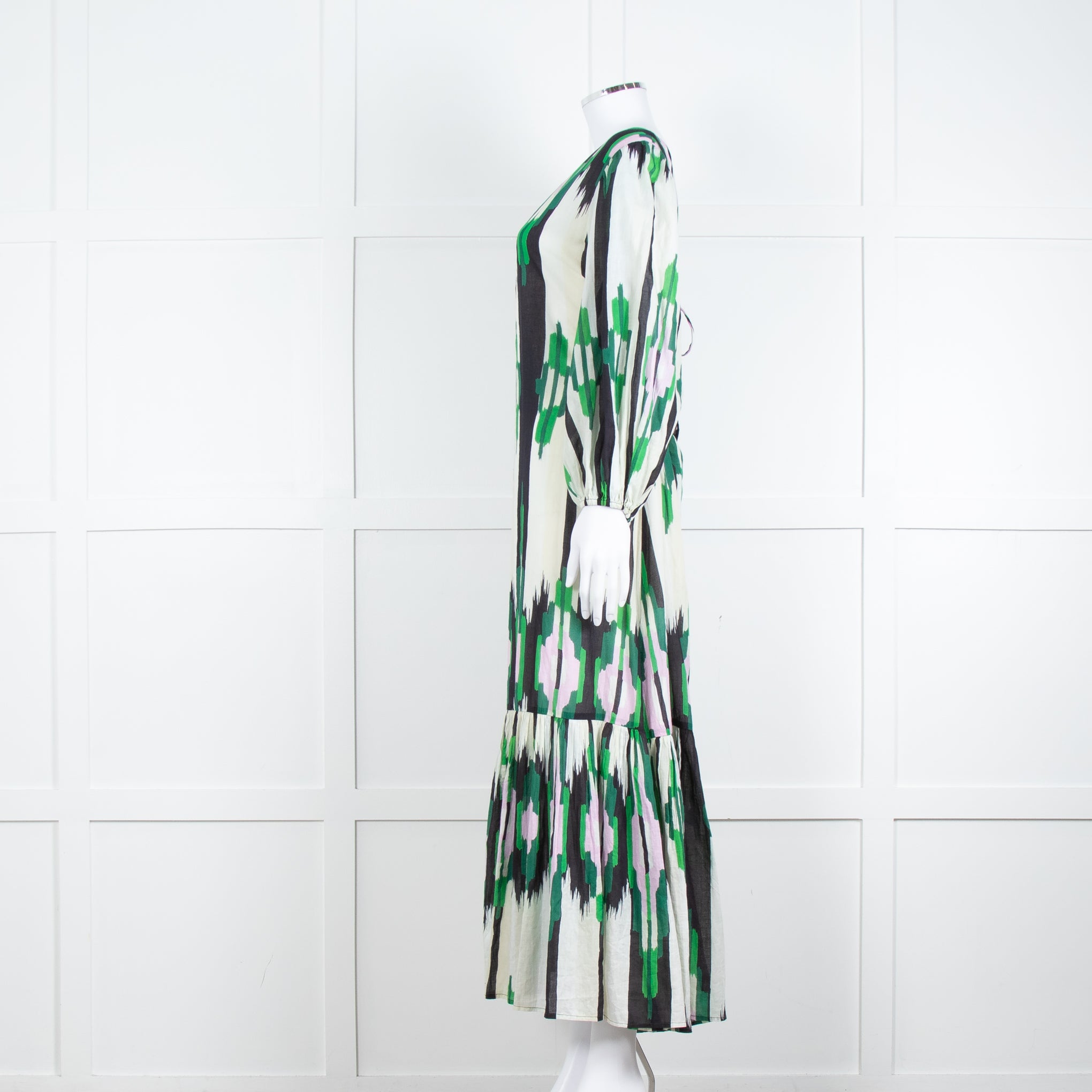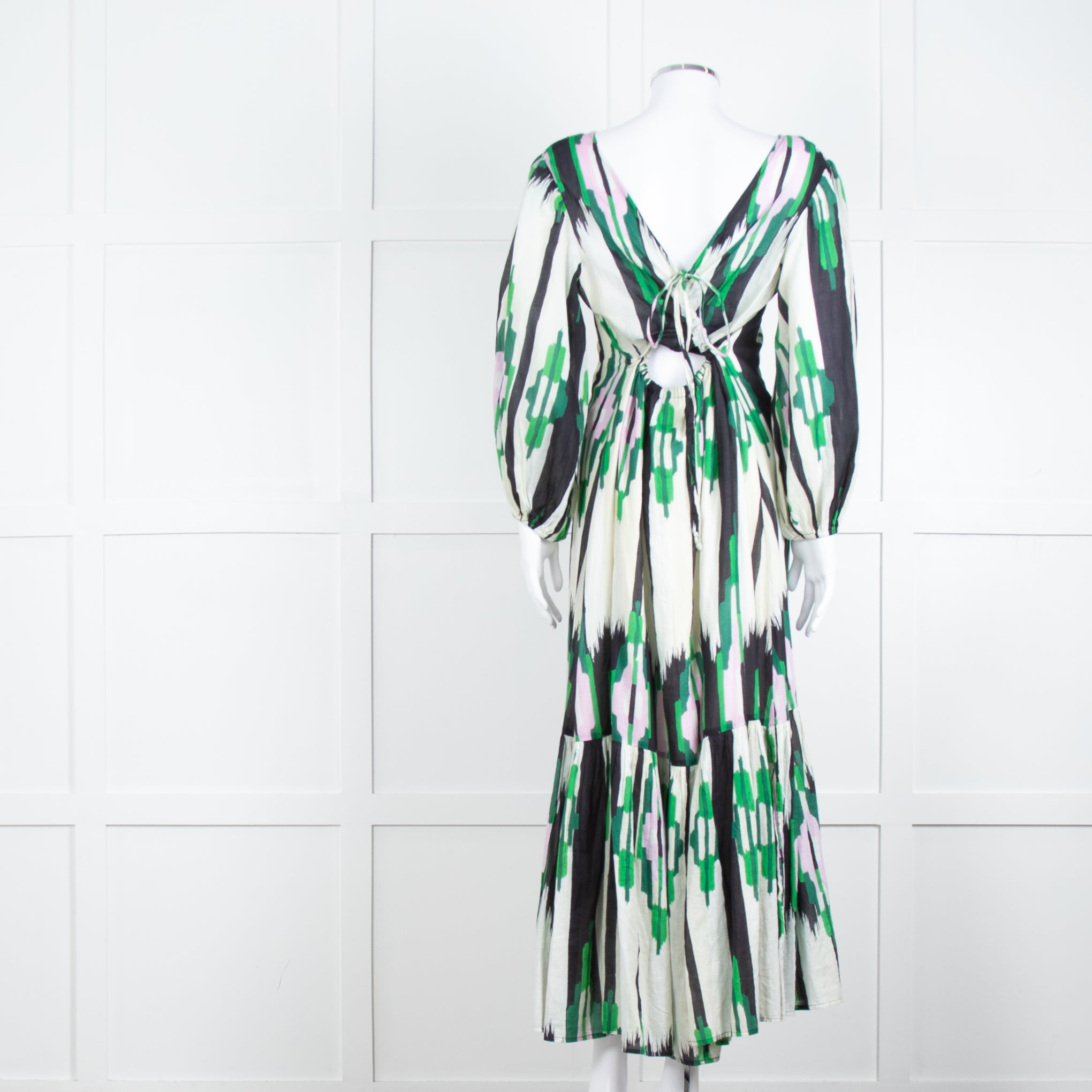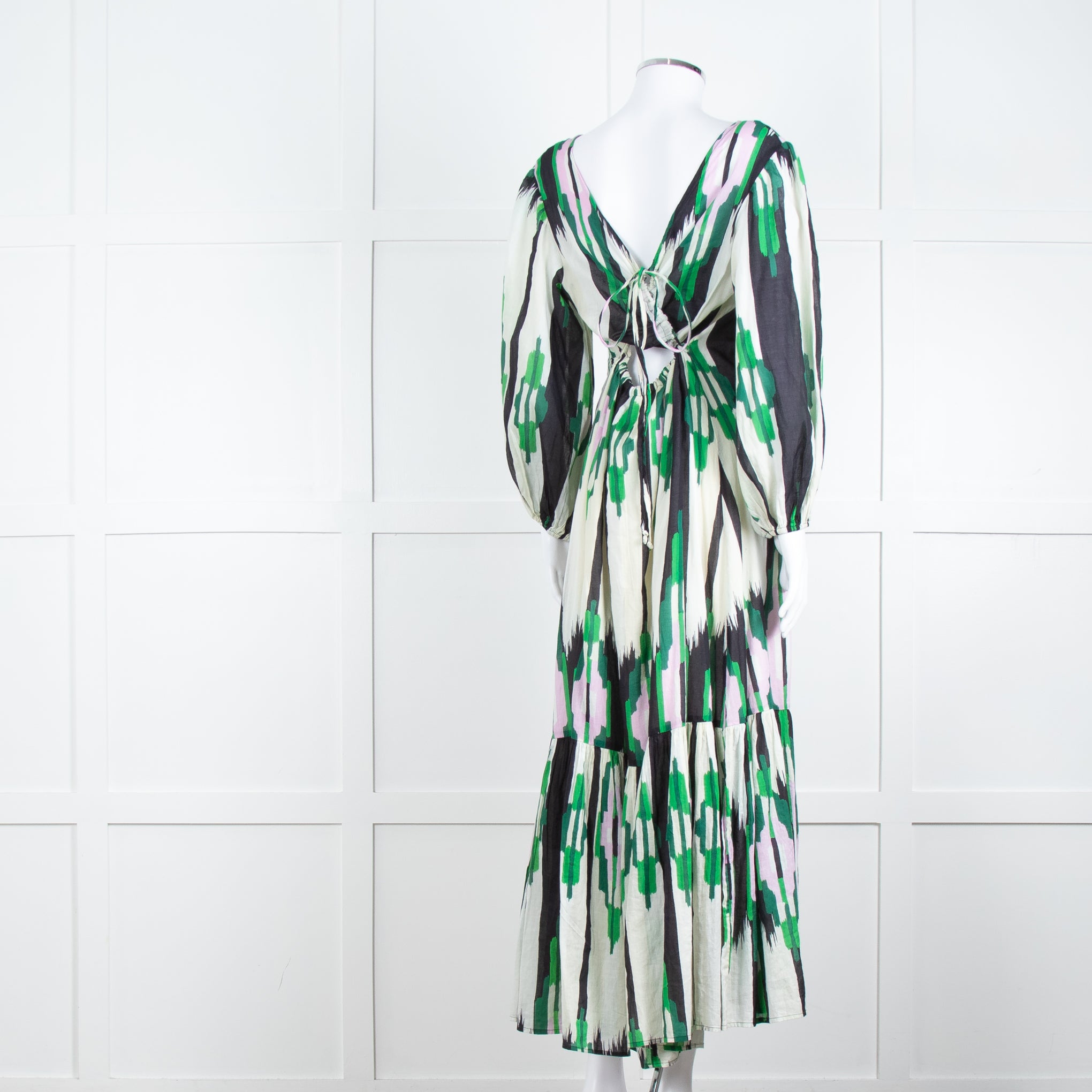 Stella Forest Cream Green Pink Cotton Back Lace Up Detail Maxi Dress