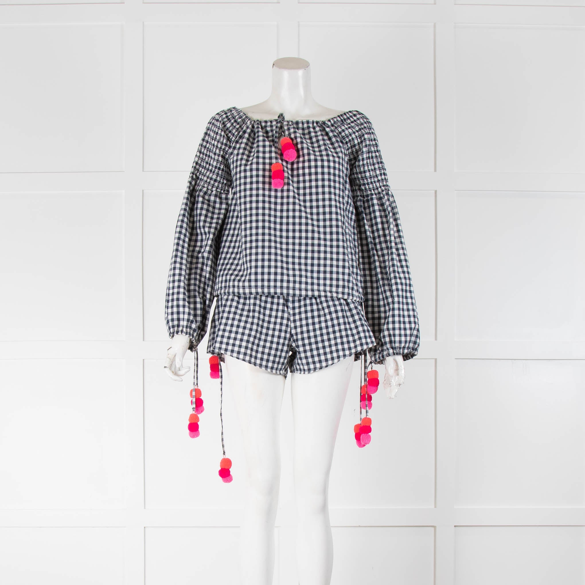 Sundress black and white checked shorts. Featuring an elasticated waistband, and ruffle trims. The matching top is available separately.