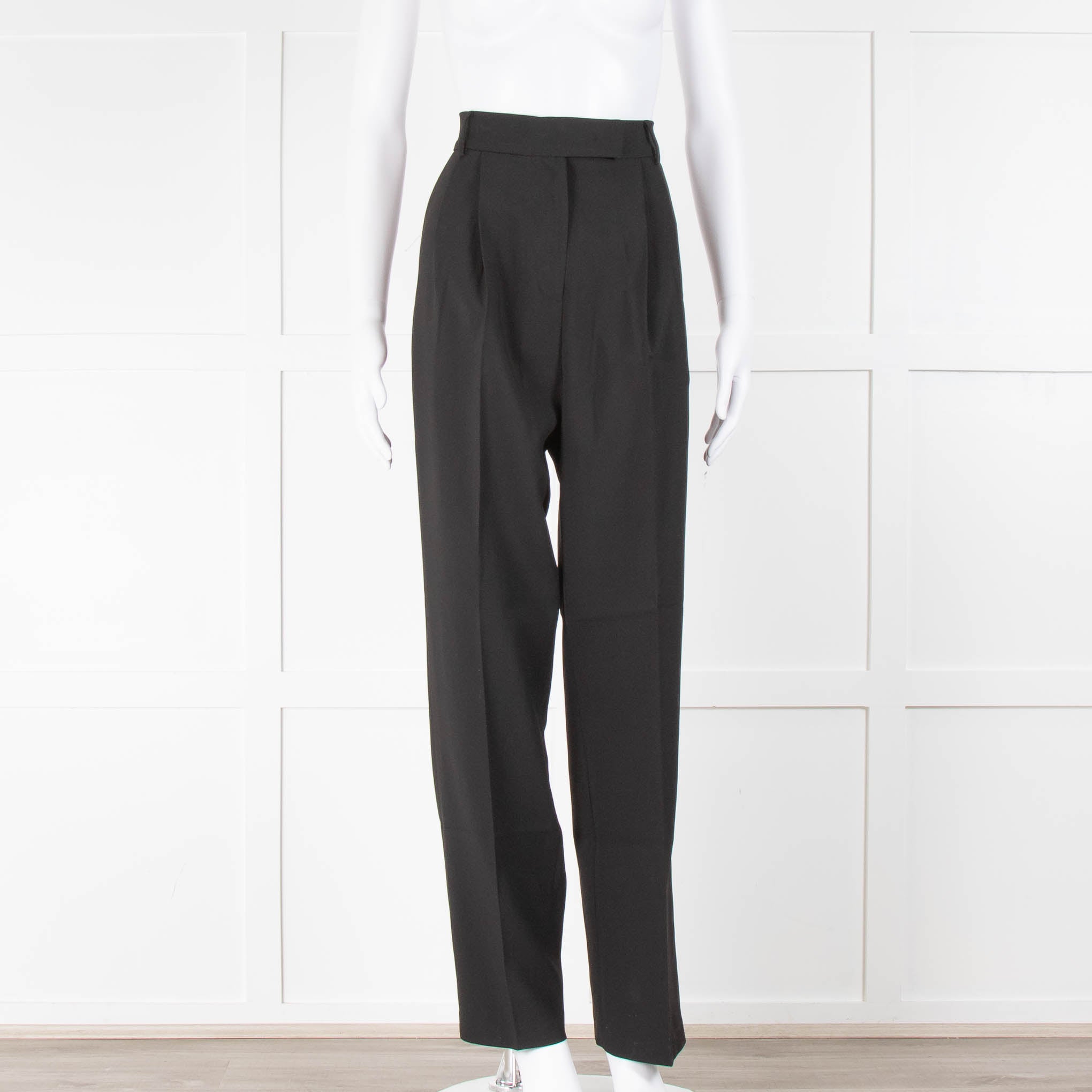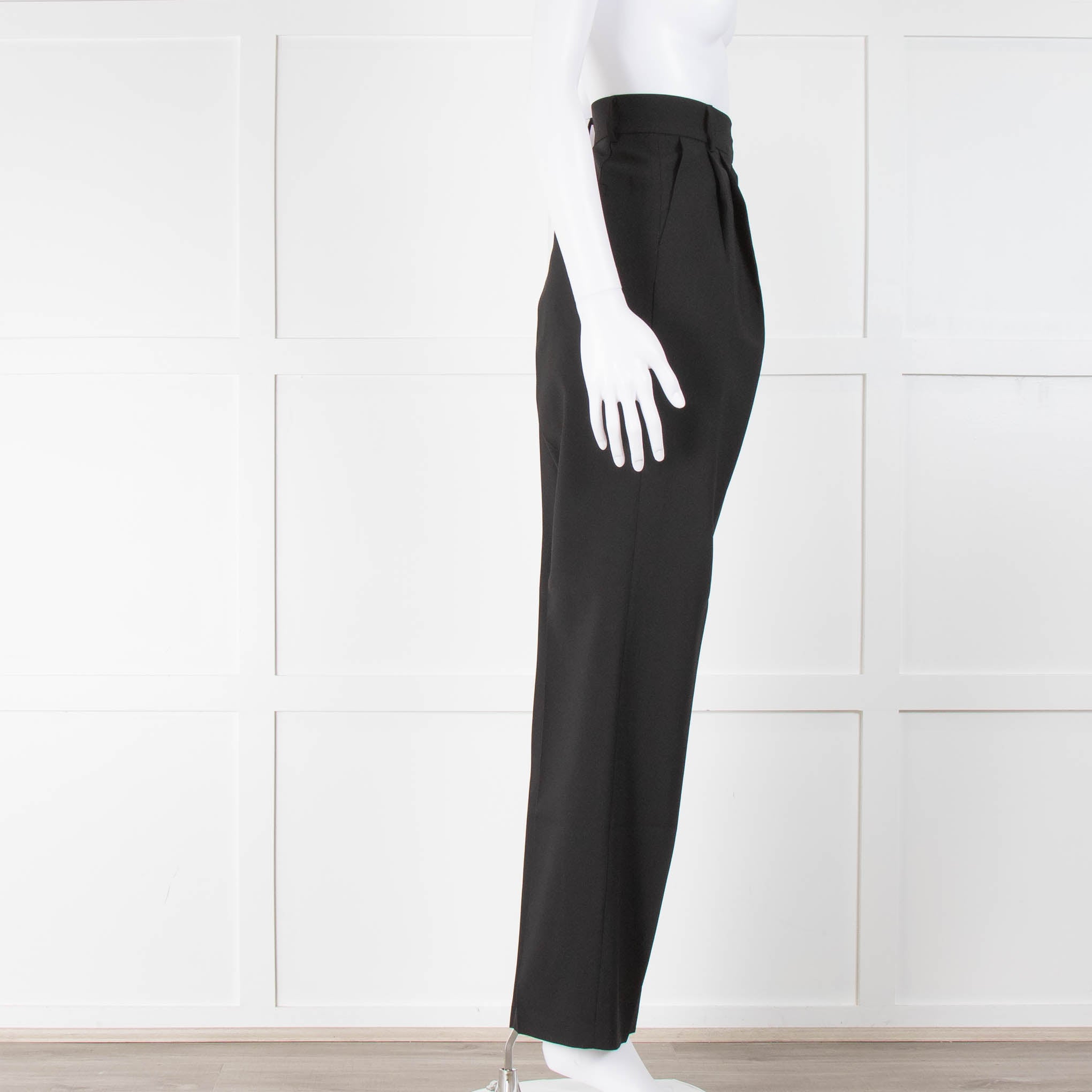The Frankie Shop black suit trouser with concealed front metal clip and zip fastening, belt loops, and two side slip pockets. These trousers also feature pleating at the front and two rear slip pockets. New with tags, current season, RRP £195.