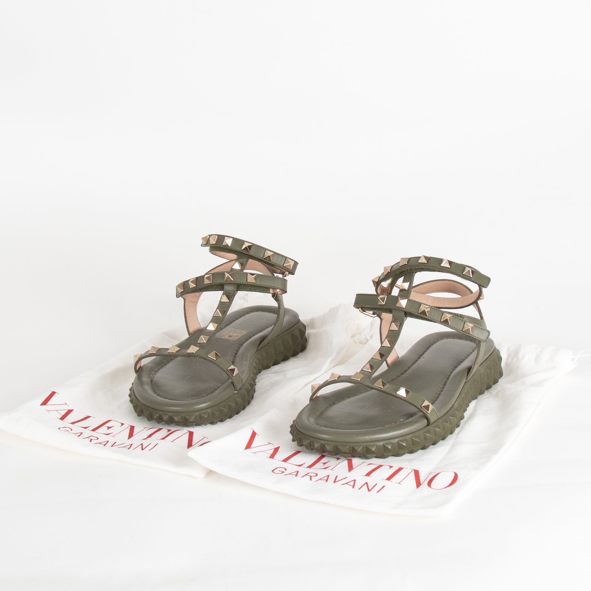 Valentino Rockstud Gladiator Sandals with Chunky Rubber Sole