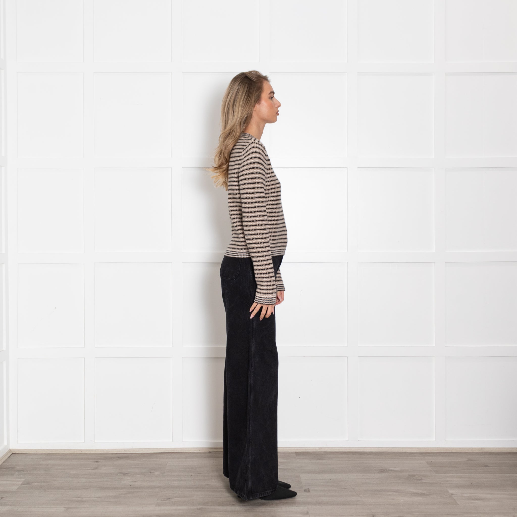 White + Warren Black And Beige Stripe Cashmere Jumper