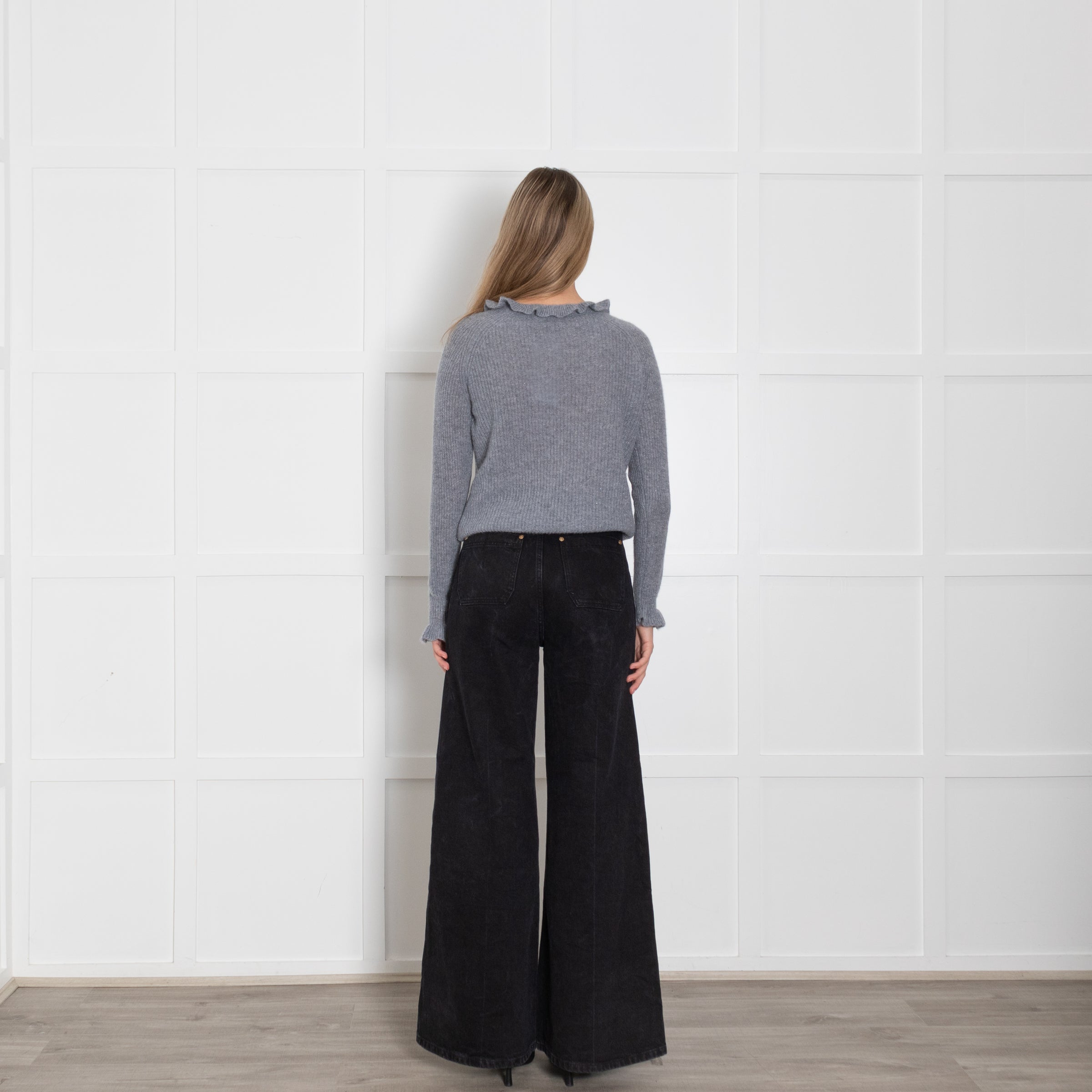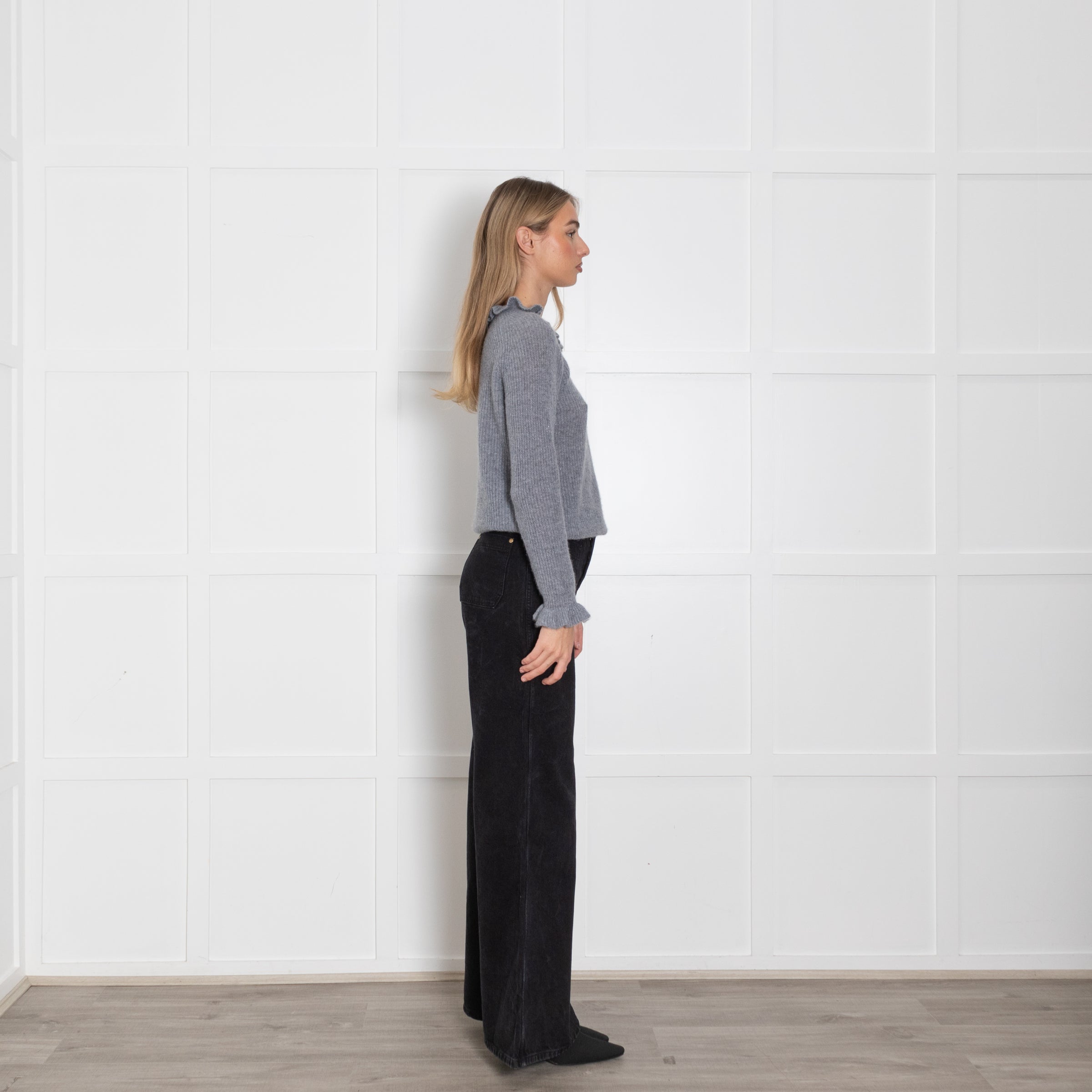 Wyse Grey Silver Lurex Cashmere Blend Frill Detail Jumper