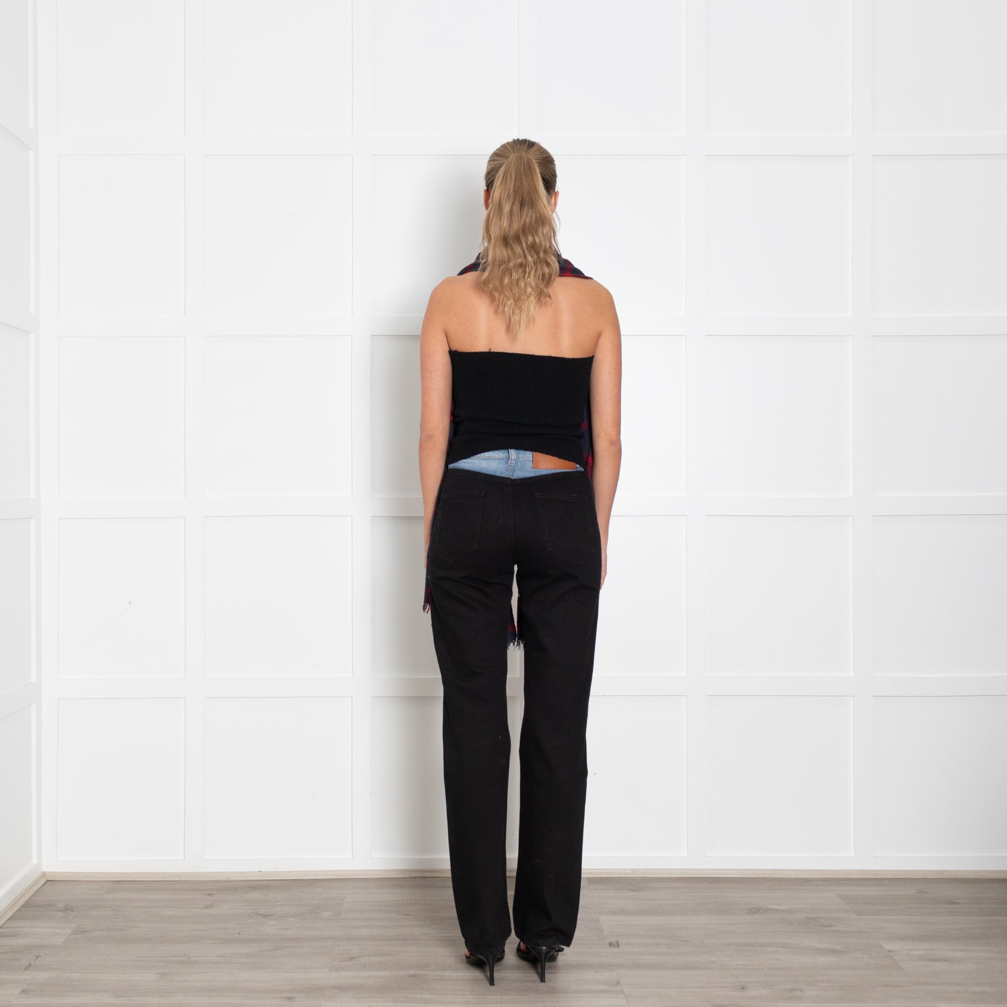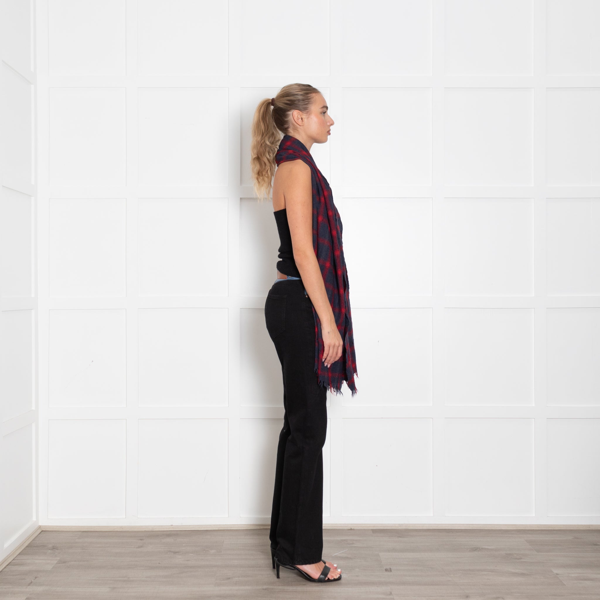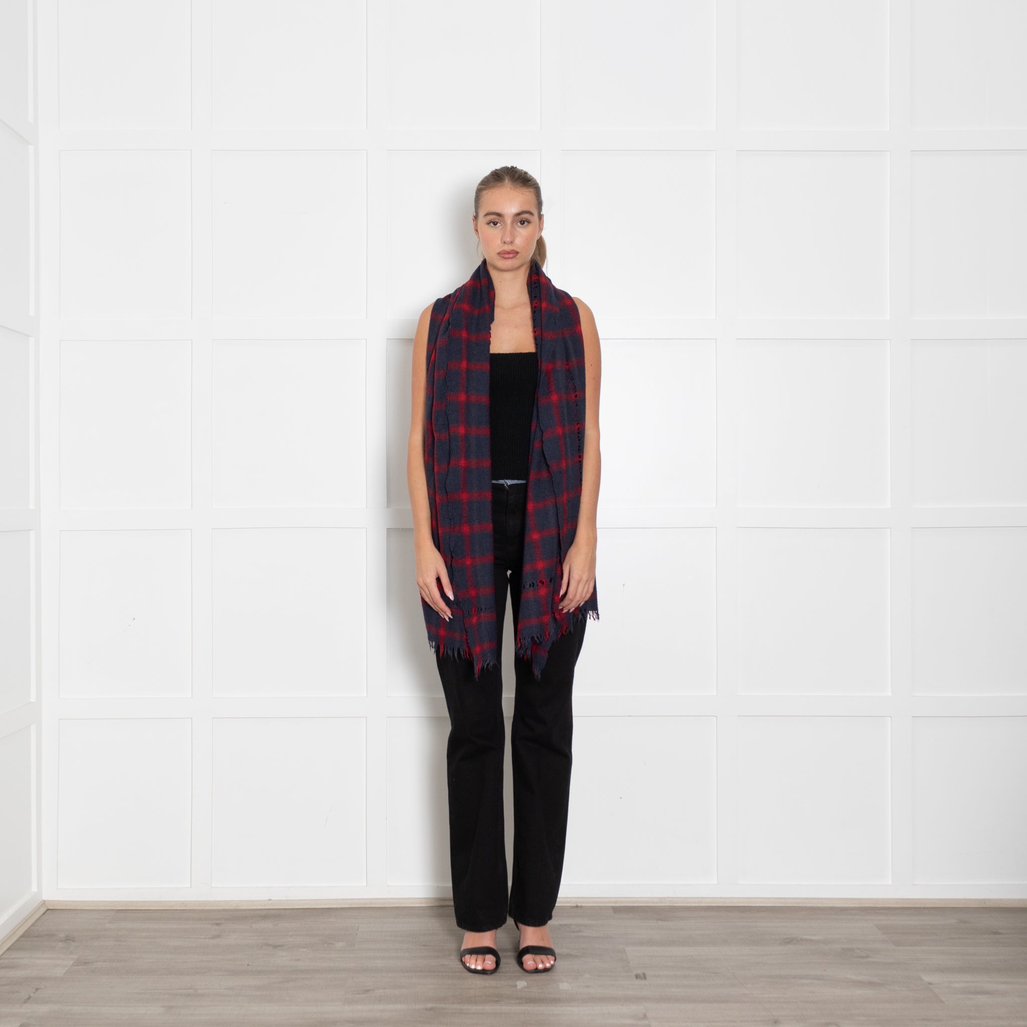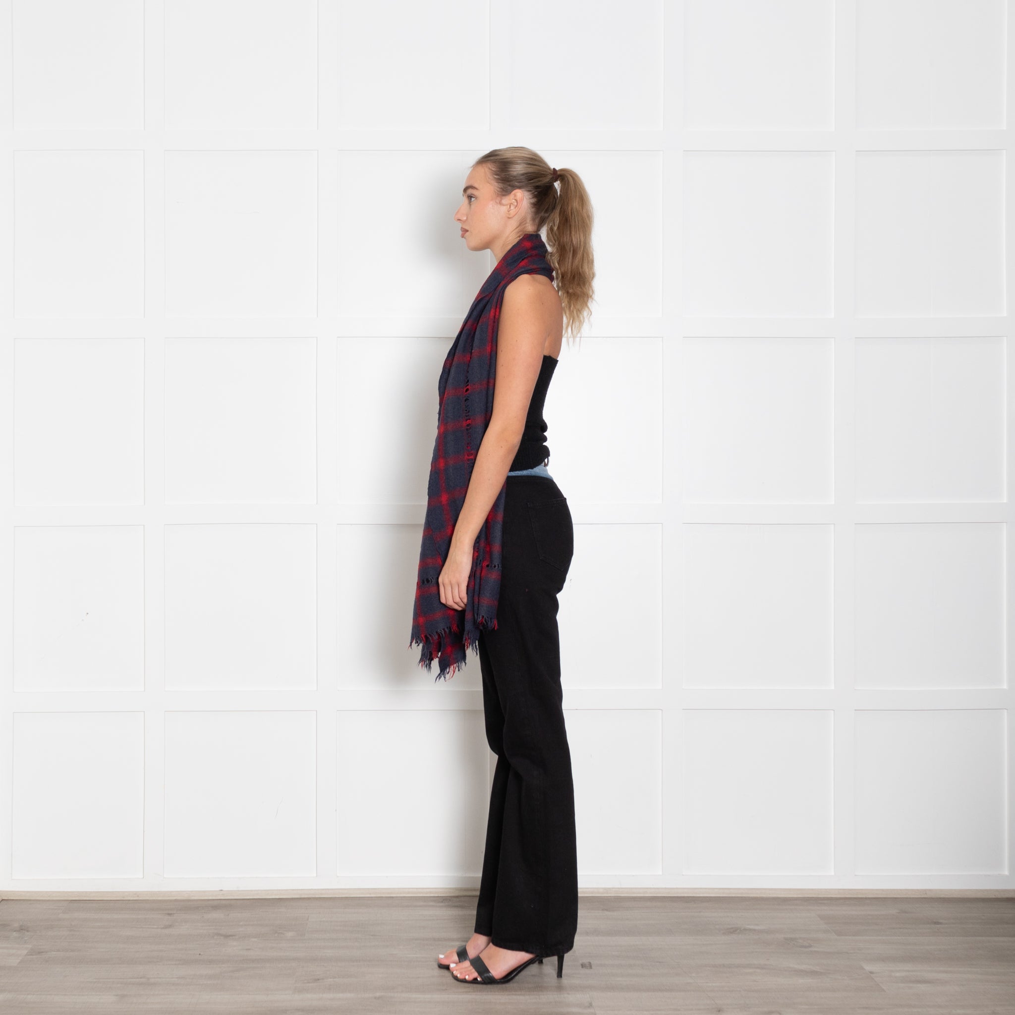 Zadig & Voltaire blue scarf, crafted with a soft fabric, featuring a red checked design.