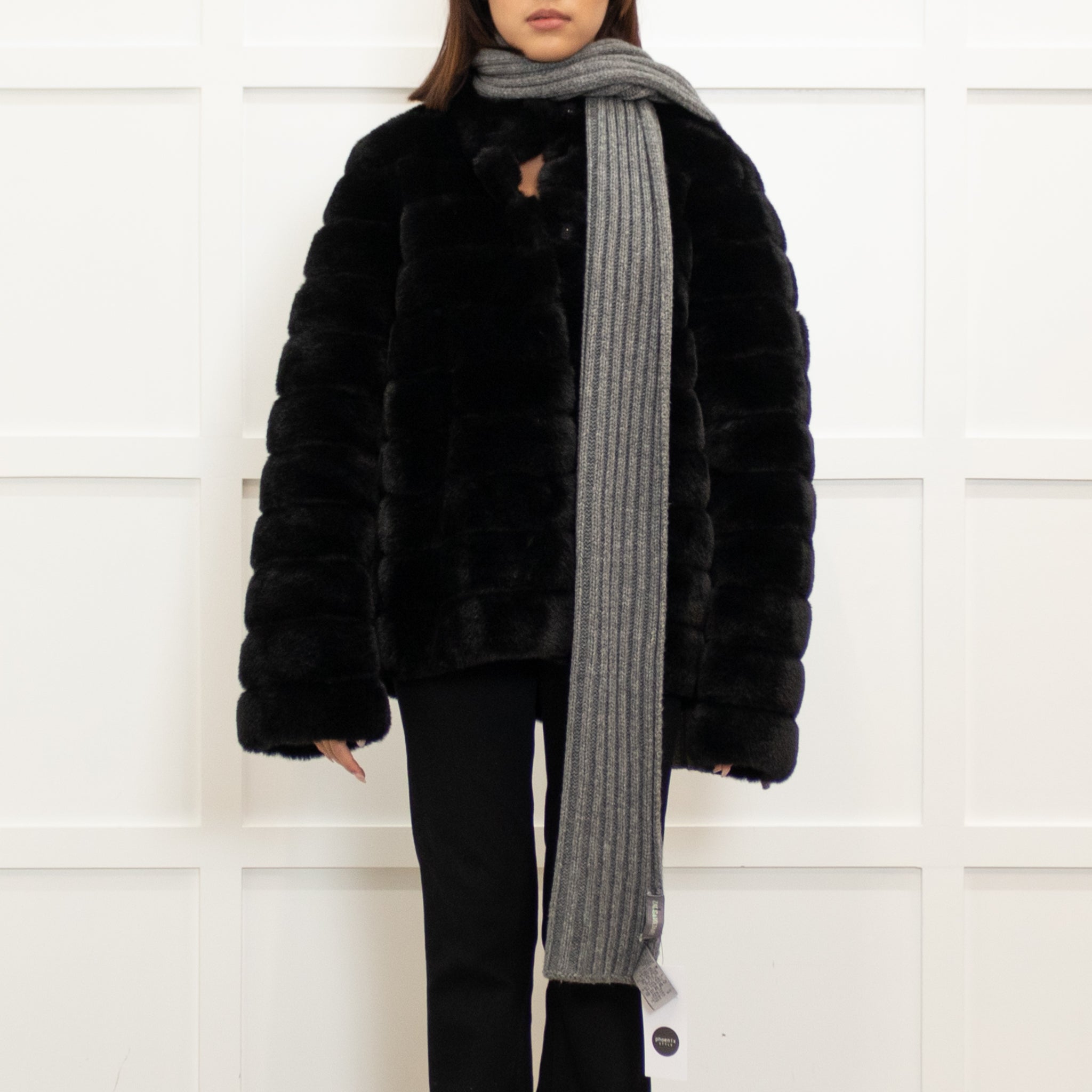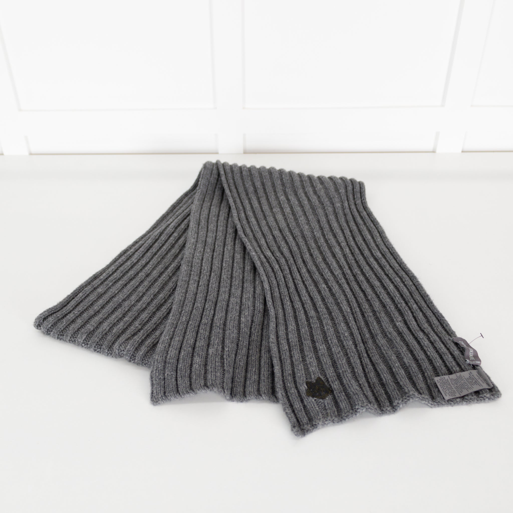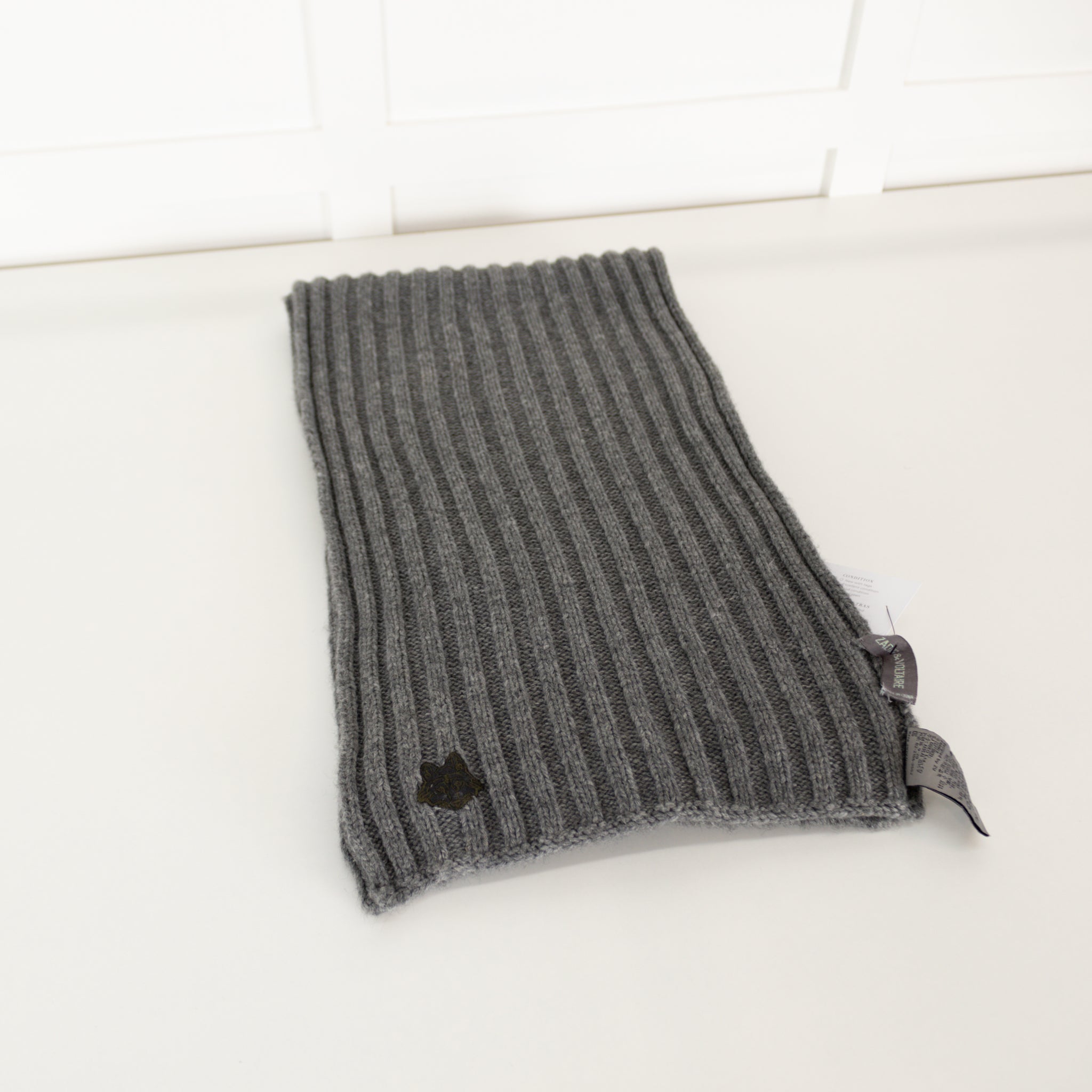 Zadig & Voltaire warm, wool grey scarf, featuring a lovely, elegant ribbed design.